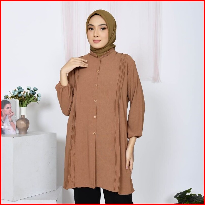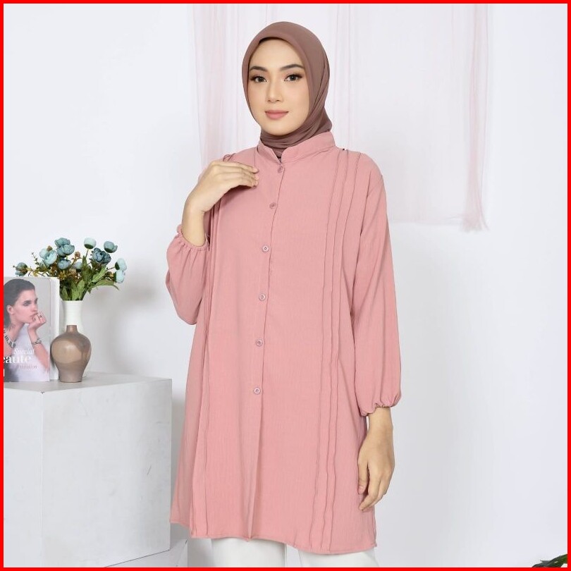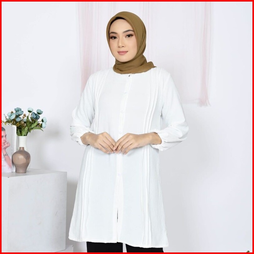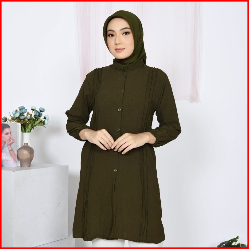 Kemeja Long Tunik Crinkle Air Flow Terbaru Model Lipat Garis Depan Polos