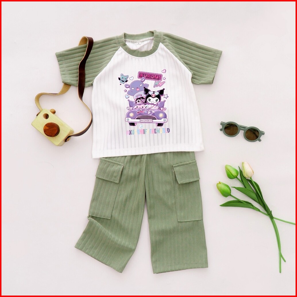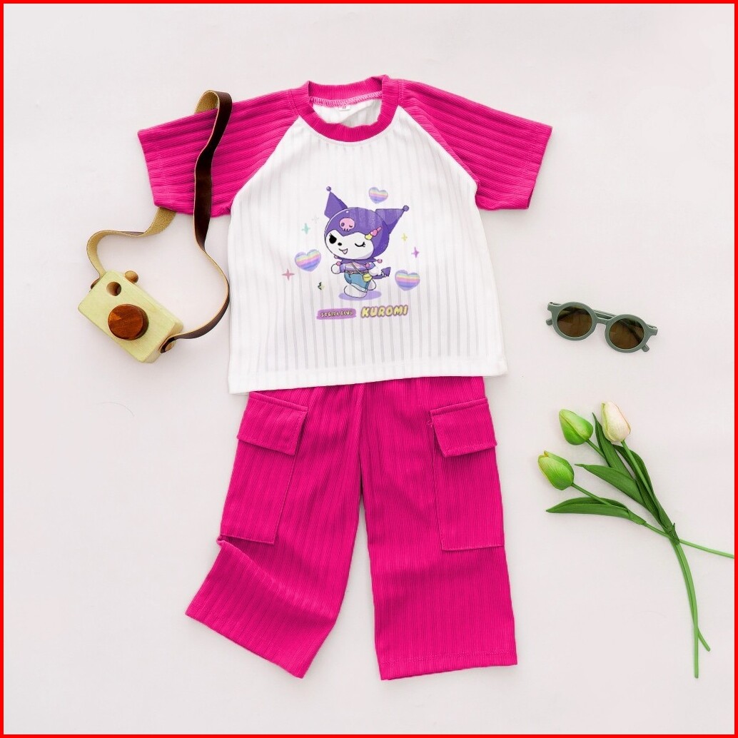 Setelan Cargo Anak Perempuan Premium Original Oshkosh Kuromi Usia 1-7 Tahun