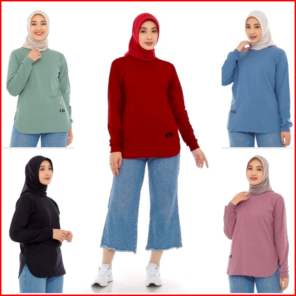 Kaos Atasan Wanita Lengan Panjang Body Oval Top Basic Polos Original Cotton Combed 24s Terlaris