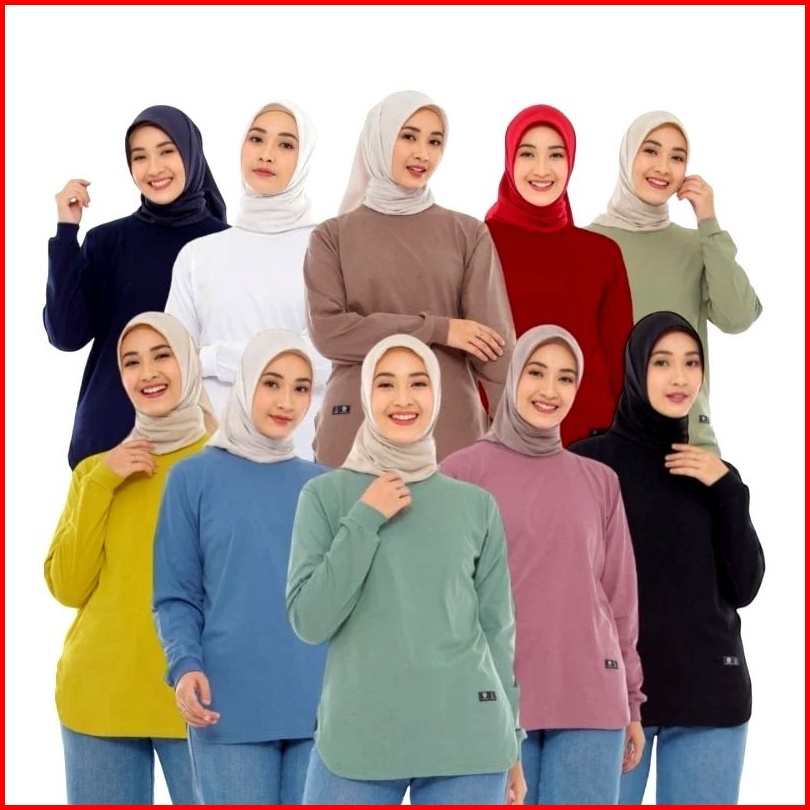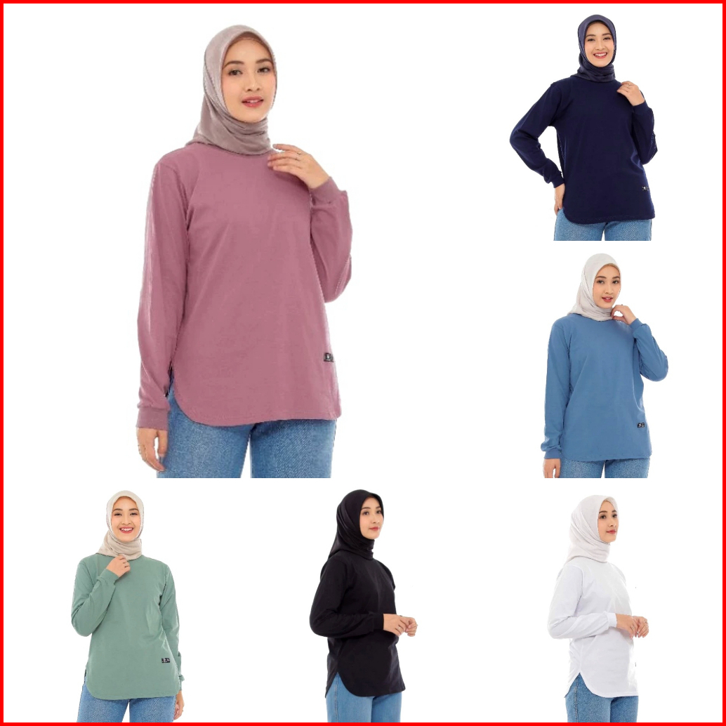 Kaos Polos Wanita Lengan Panjang Body Oval Full Size Jumbo Top Basic Terbaru Kekinian
