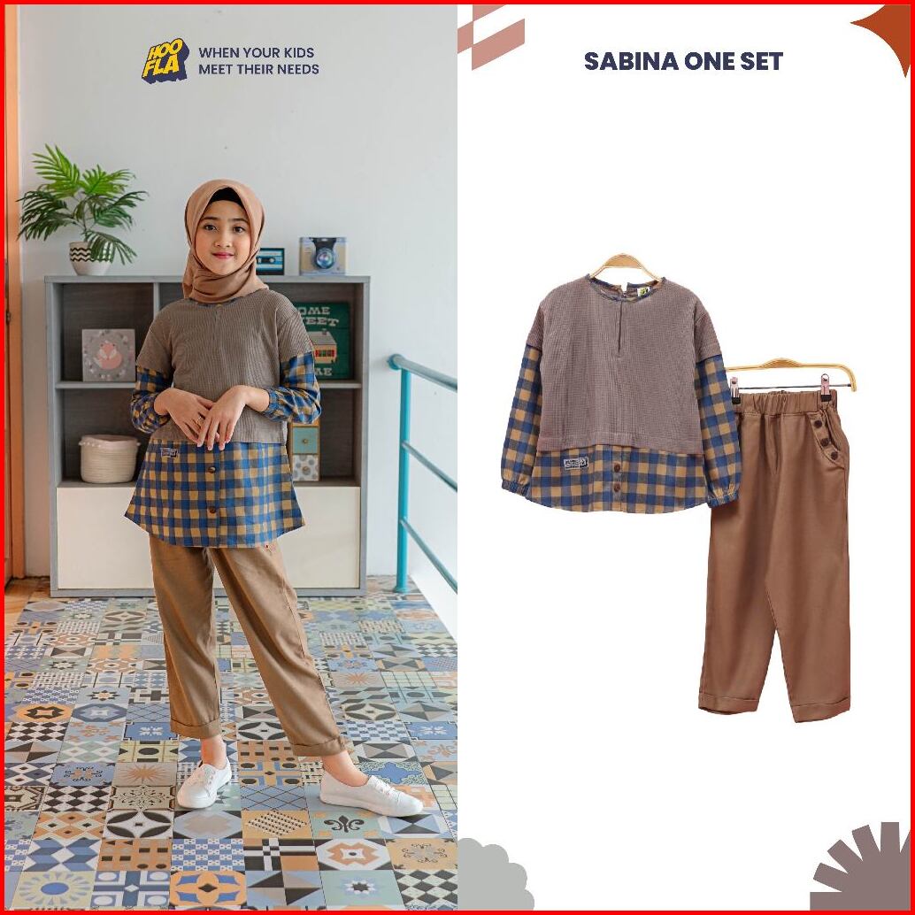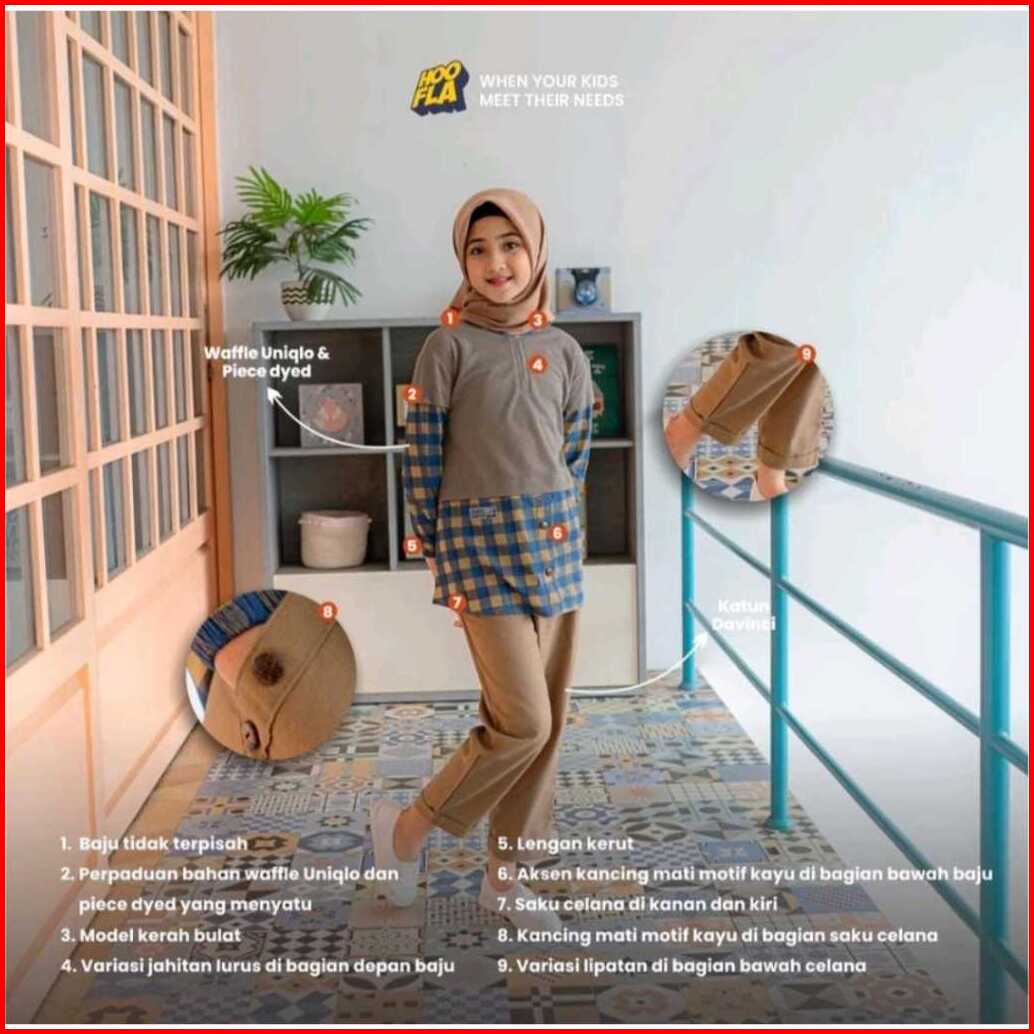 Hoofla Sabina Baju Celana Anak Perempuan 5-12 Tahun Muslimah Setelan Casual Frapucinno Navy