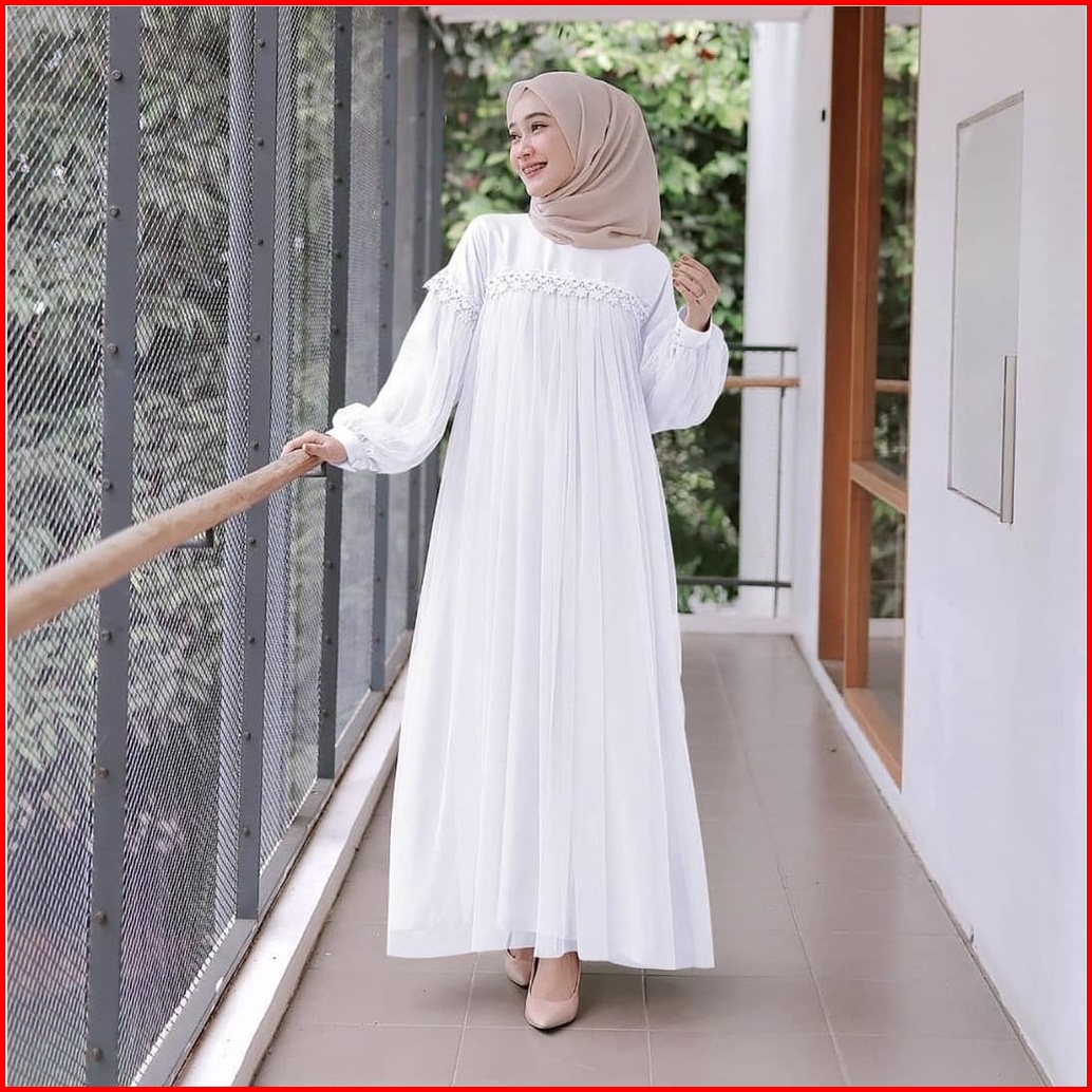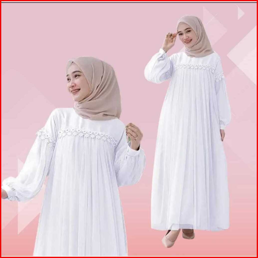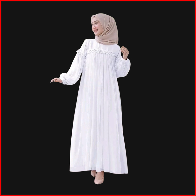 Fashion Muslim Pakaian Muslim Wanita Dress Gamis Nuraini - Dres Anak Sampai Dewasa - Bahan Crincle Mix Tulle