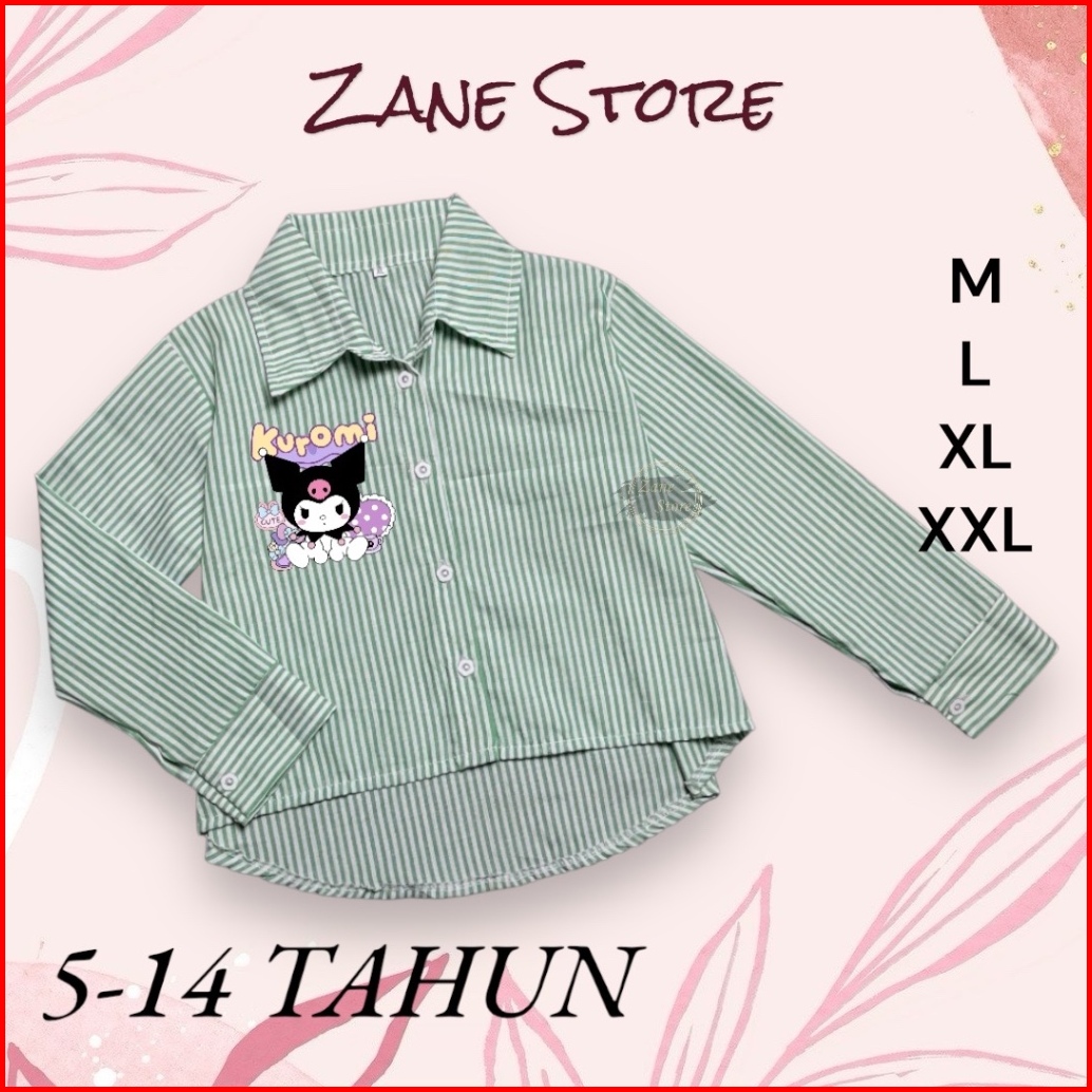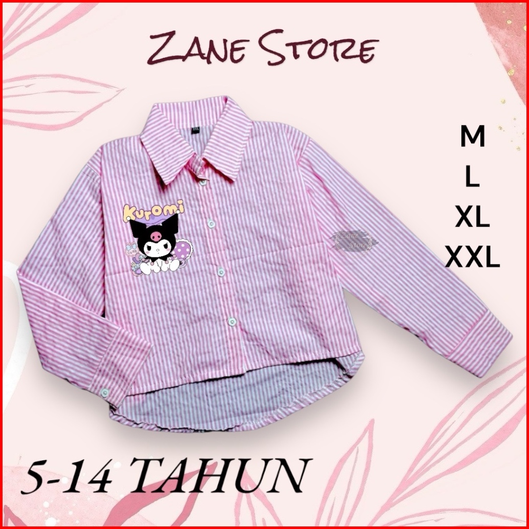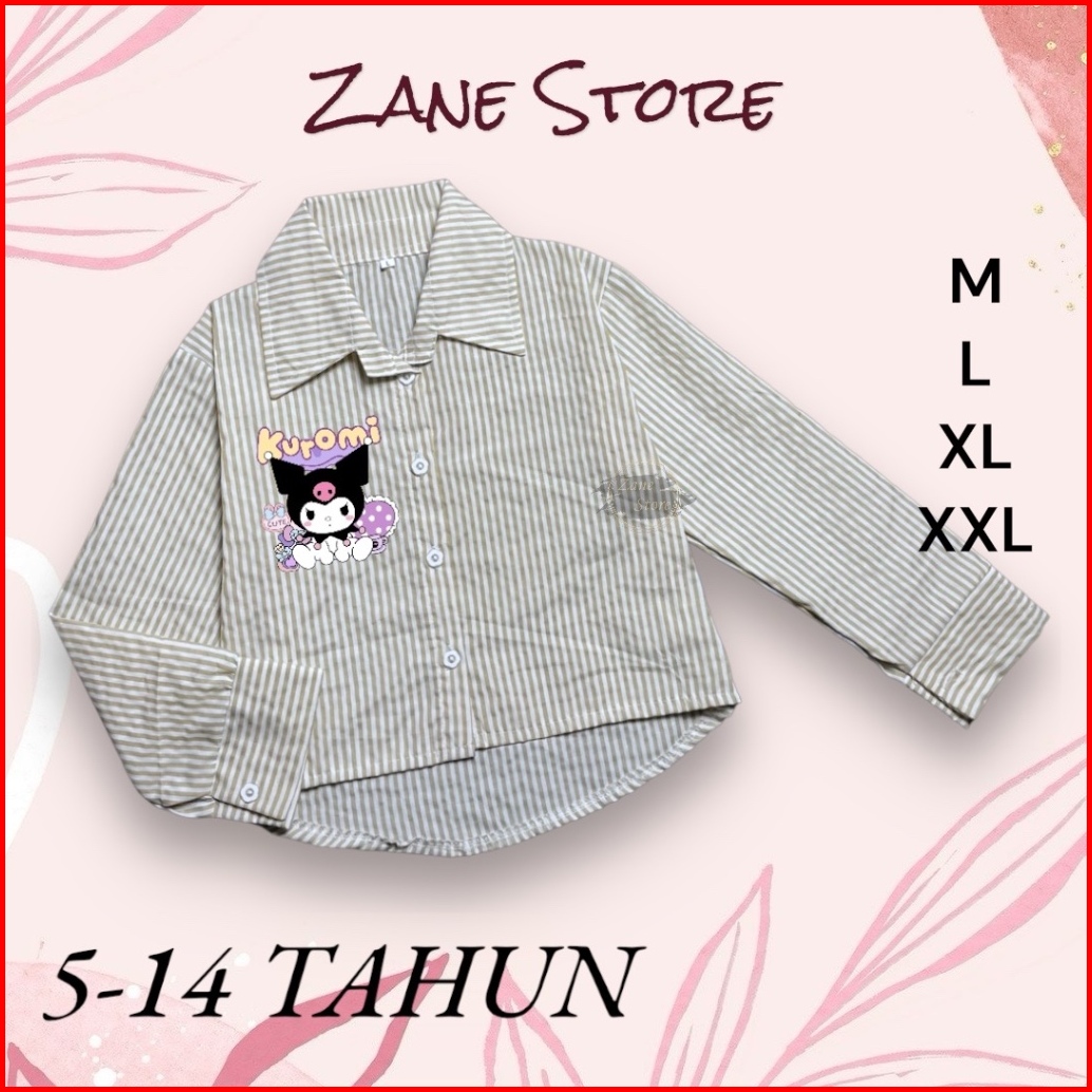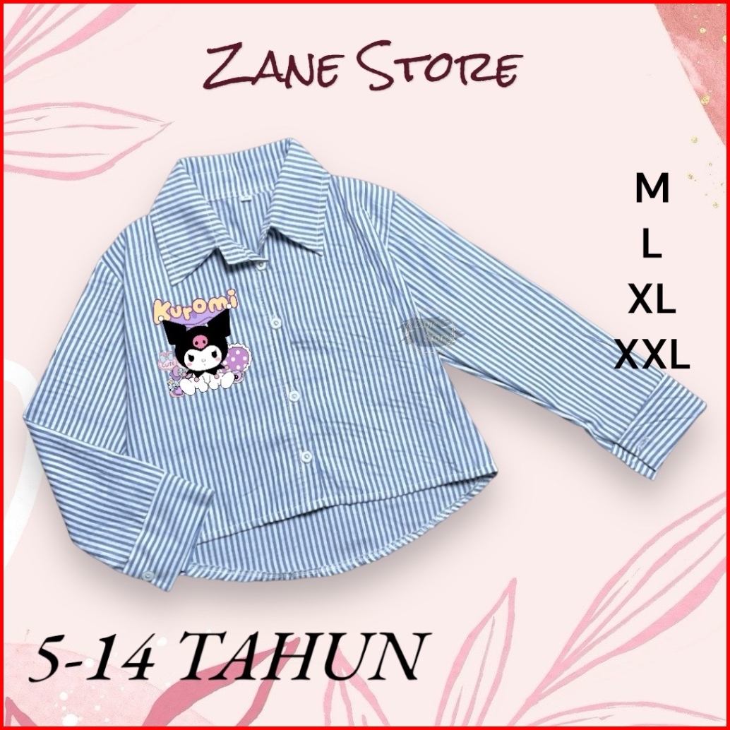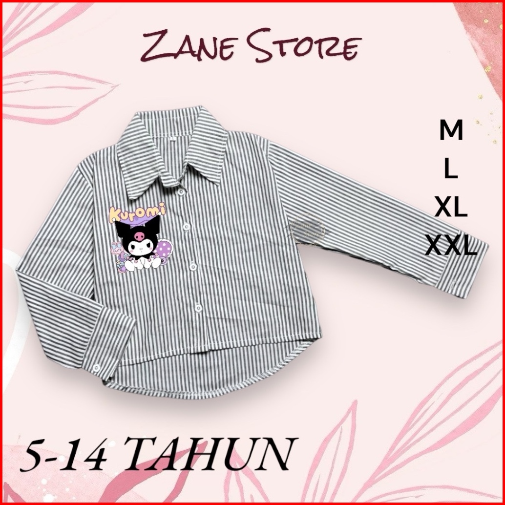 Zane Store - Blouse Kemeja Atasan Kuromi 5-14 Tahun Katun Salur Atasan Anak Perempuan Viral Ootd Terbaru Lebaran
