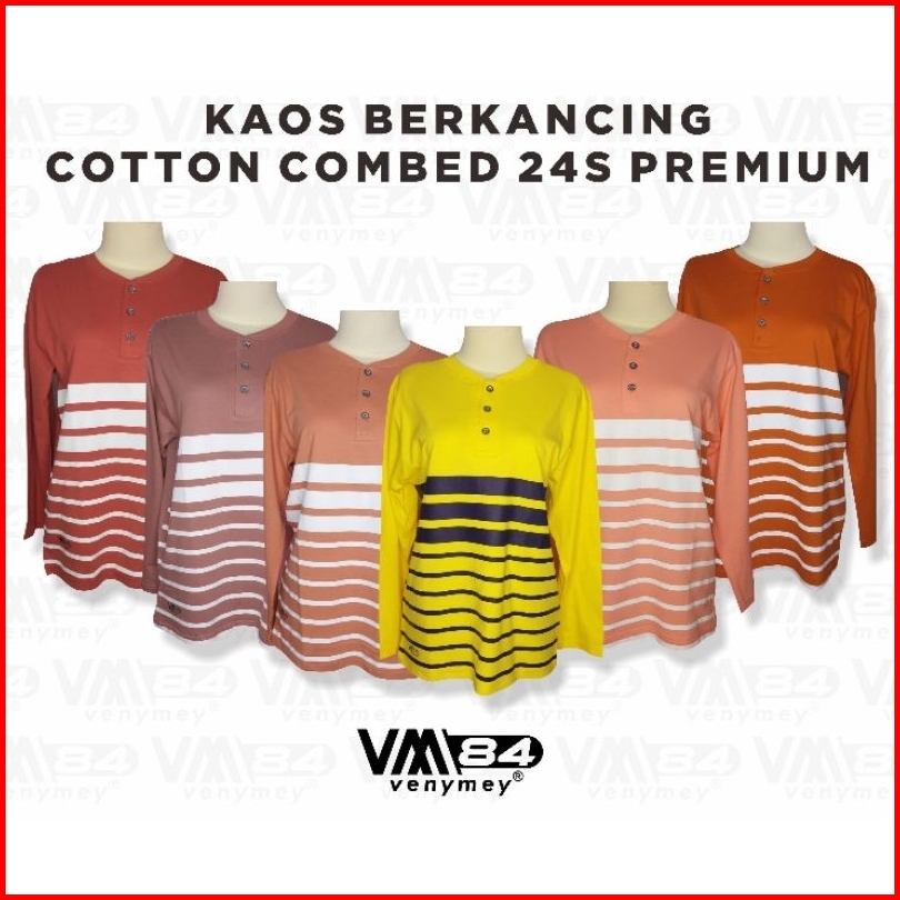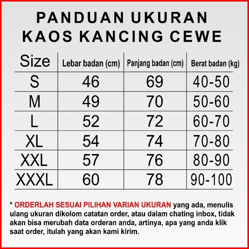 Kaos Kancing Wanita Sablon Cotton Combed 24s Premium