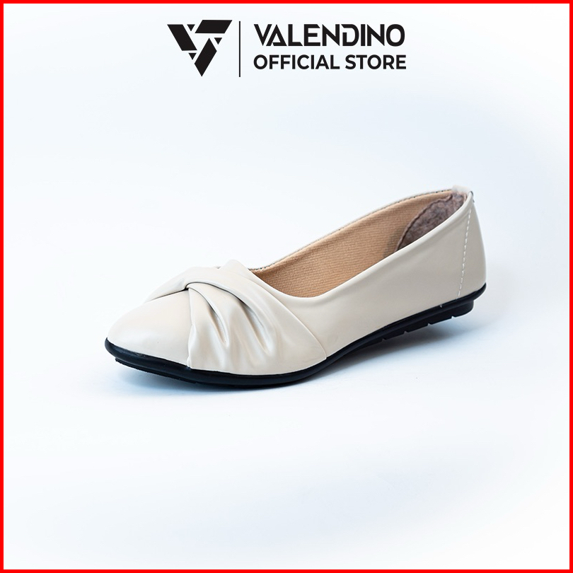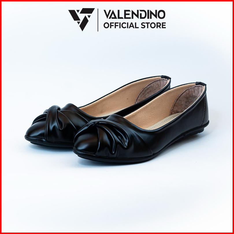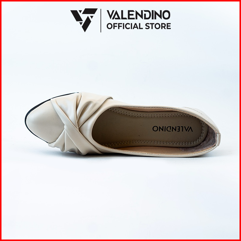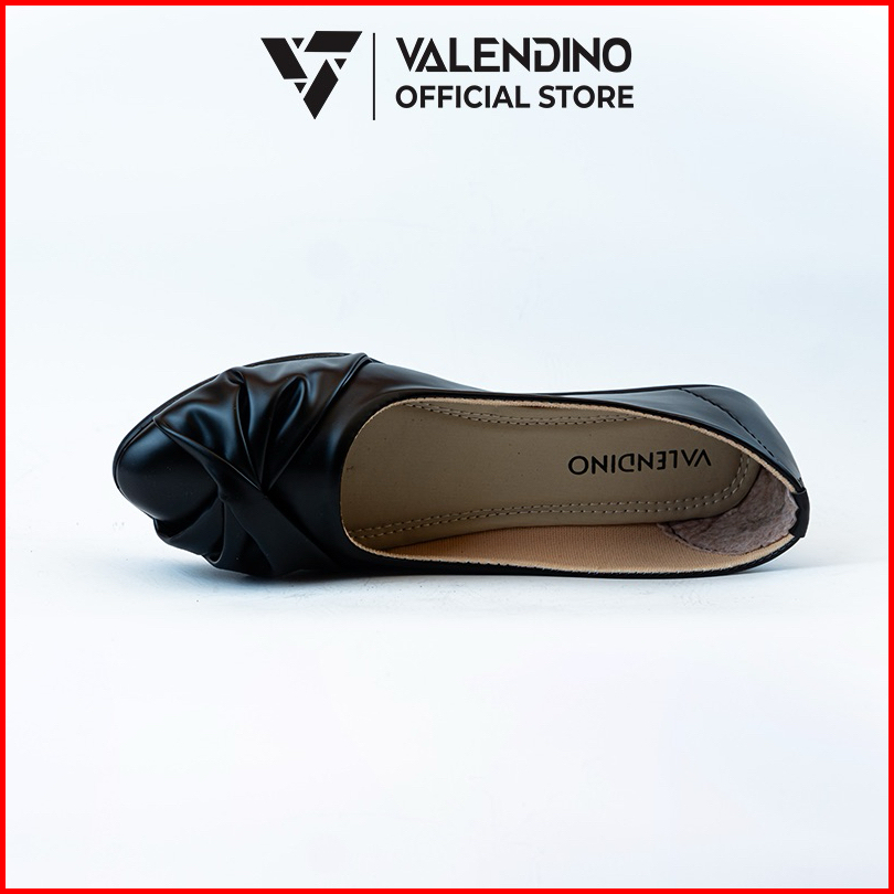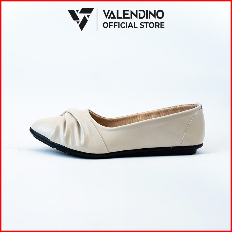 Valendino Flat Shoes Wanita - Hitam Cream