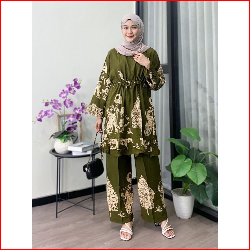 Setelan Tunik Wanita Size Jumbo Motif Wayang Busui Rayon Pemium Halus Adem Dan Nyaman Dipakai