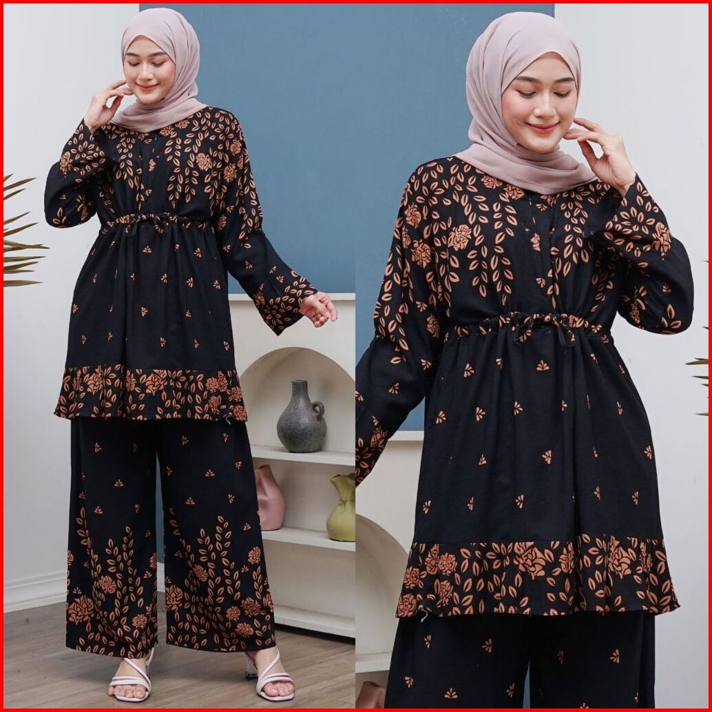 Setelan Wanita Size Jumbo Model Tunik Bahan Rayon Premium Motif Terbaru Halus Dan Adem Dipakai