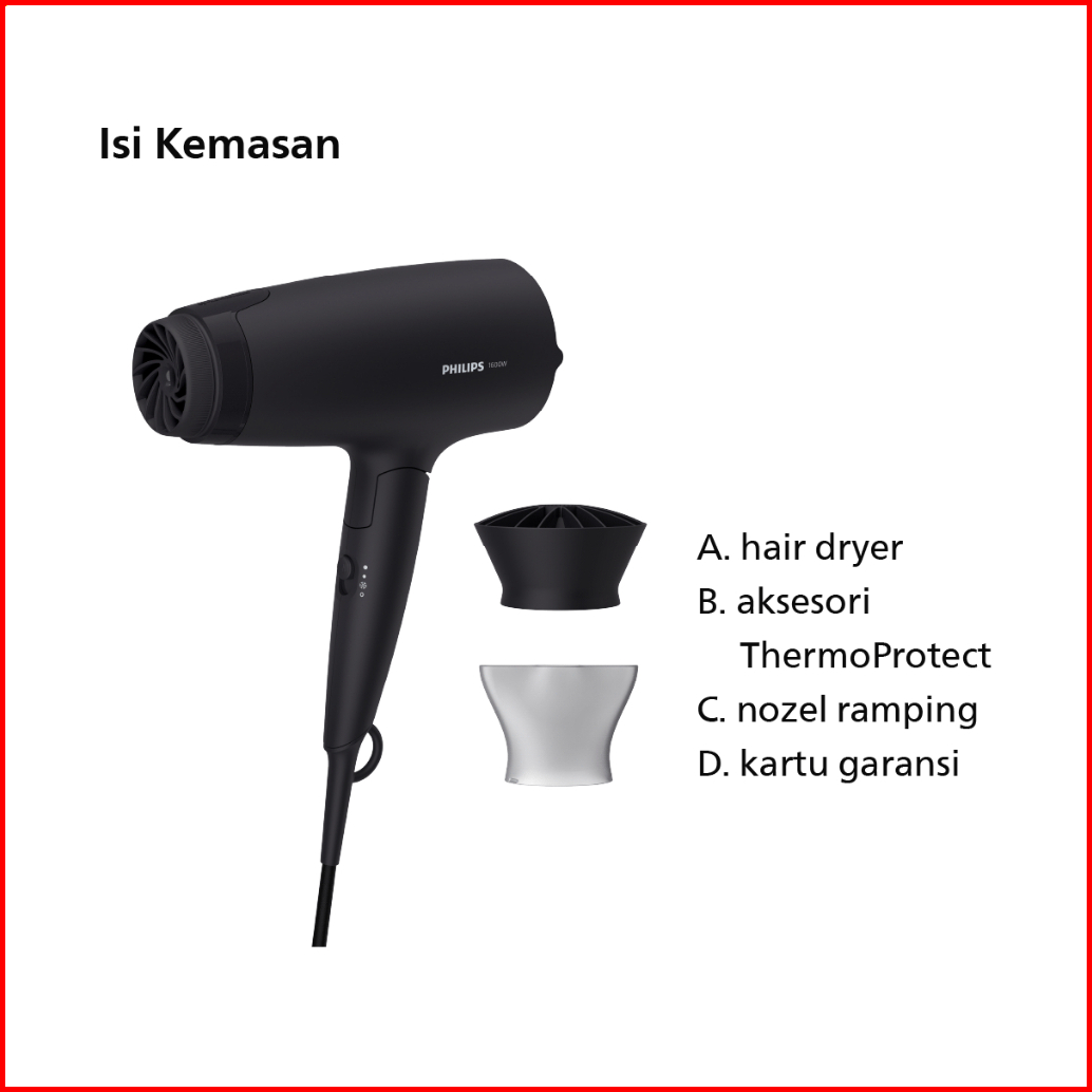 Philips Hair Dryer 3000 Pengering Rambut Melindungi Rambut Dengan Thermoprotect Teknologi Hitam Bhd308 10