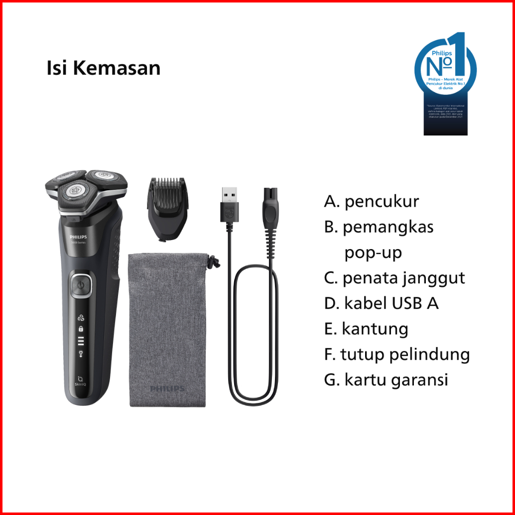 Philips Shaver 5000 Alat Cukur Electric Kumis Dan Jenggot Pria Cukur Cepat Tanpa Luka Baret Dengan Skin Iq Teknologi S58
