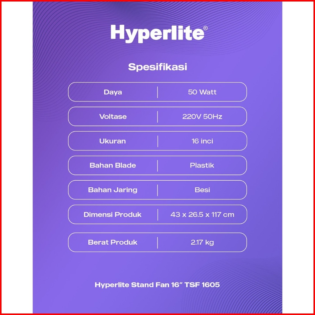 Kipas Angin Stand Fan Kipas Angin Berdiri Hyperlite Tsf 1605 Tsf1605 Tsf-1605 16 Inch Garansi Resmi