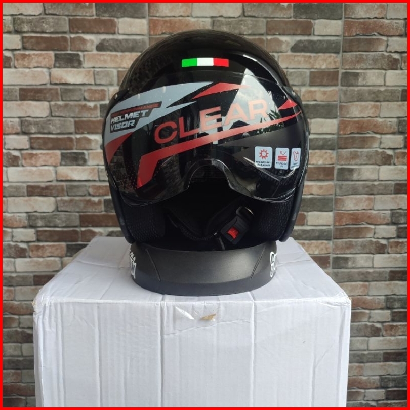 Helm Pilot Italy Hitam Glossy Kaca Impor Original Sudah Sni