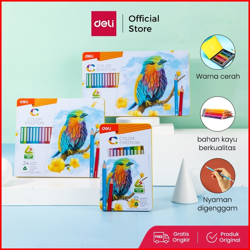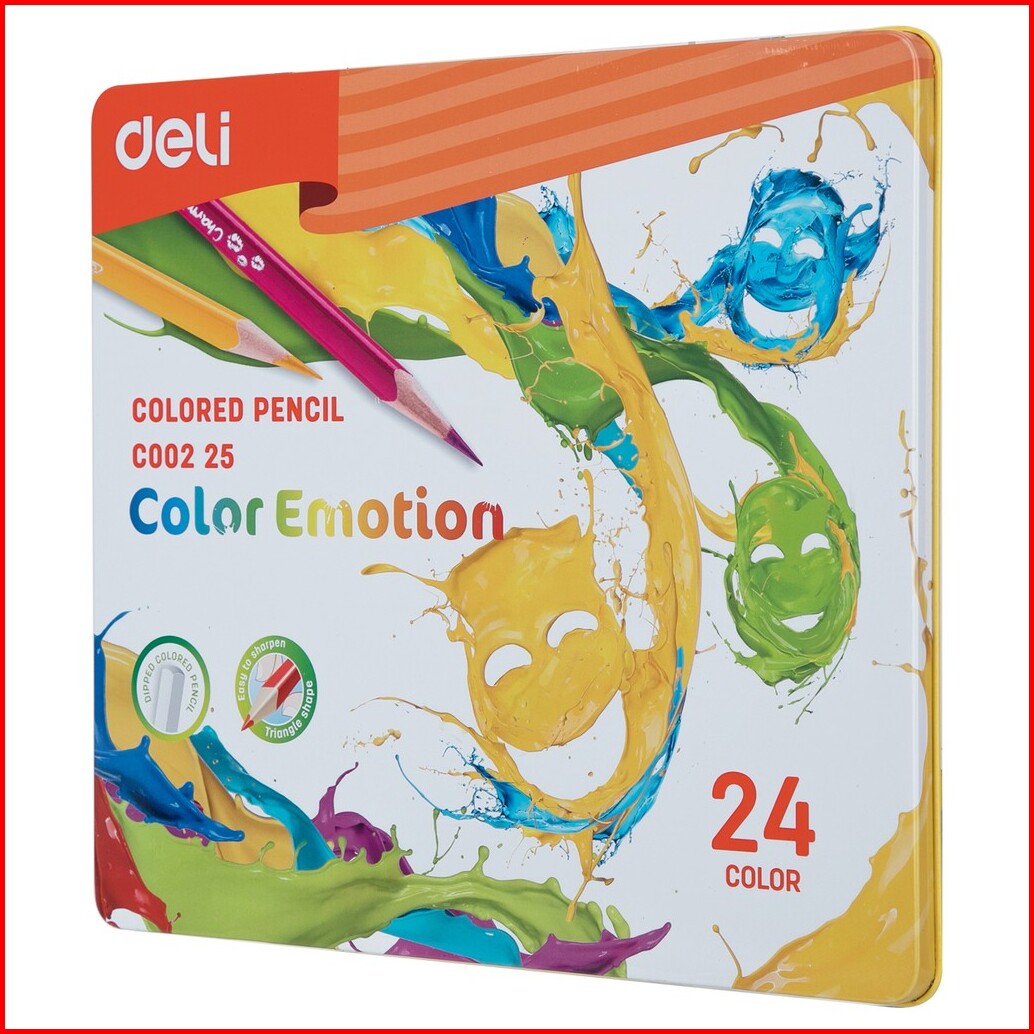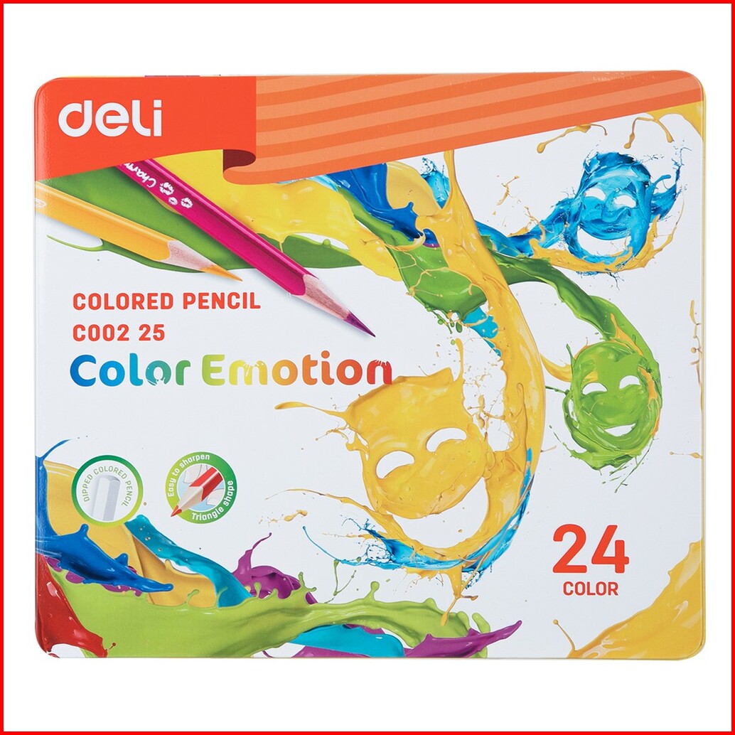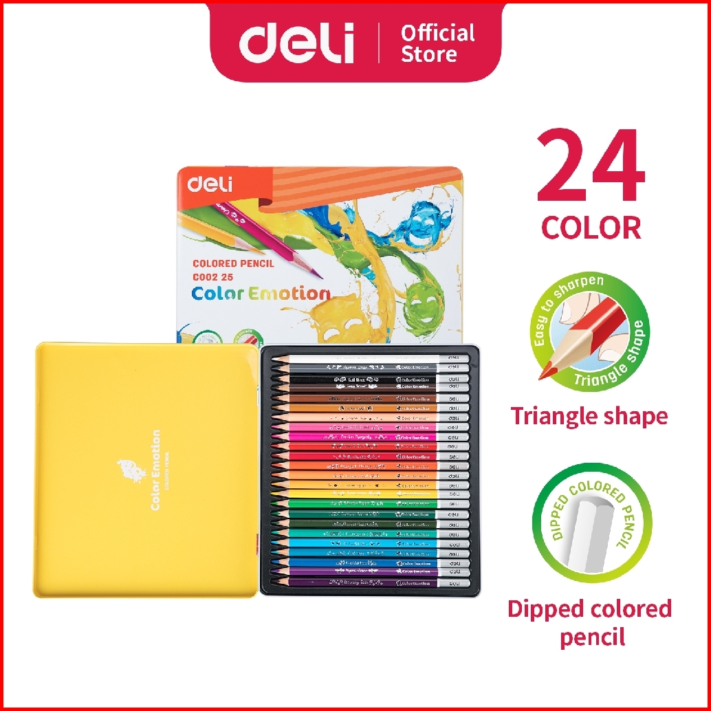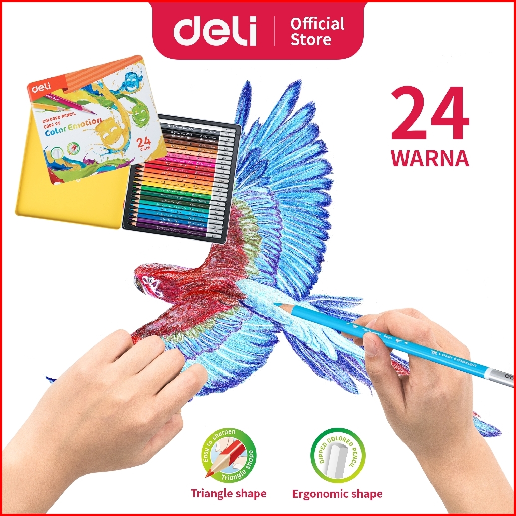 Deli Pensil Warna Halus 24 Warna Bentuk Segitiga Ergonomis Ec00225