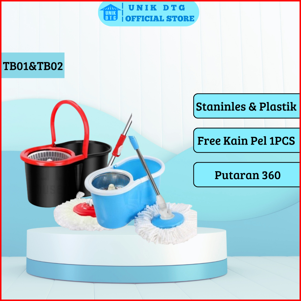 Unikdtg Alat Pel Lantai Praktis Spin Mop Ember Pengering Stainlees Dan Plastik
