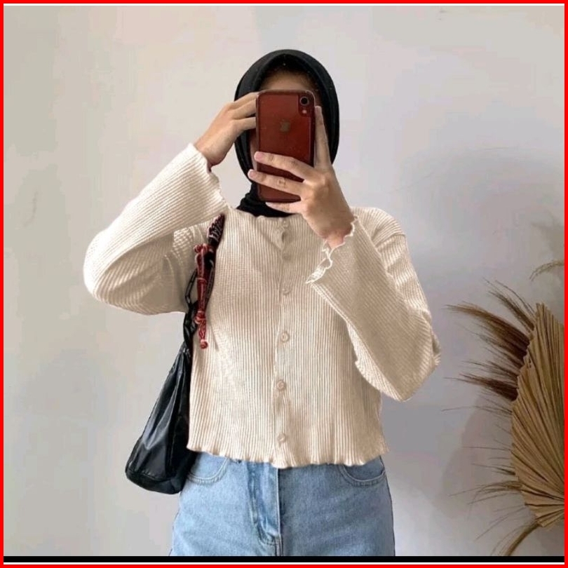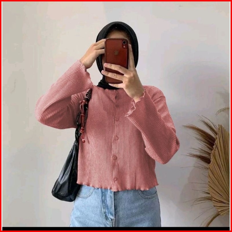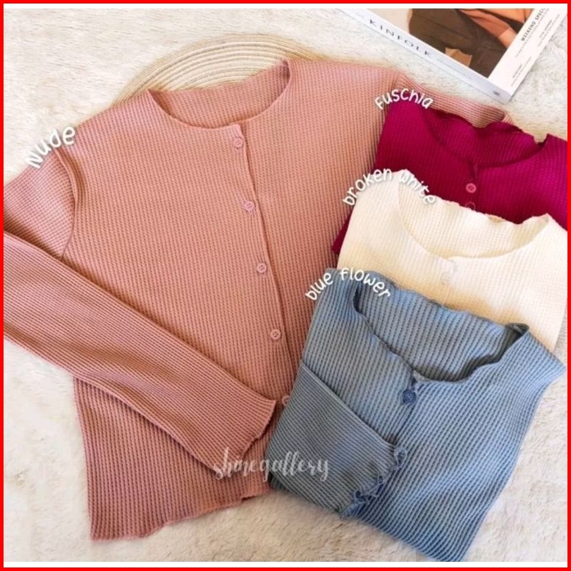 Cardigan Crop Korea Style Crop Top Premium Wafle