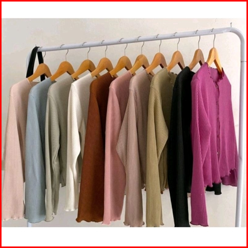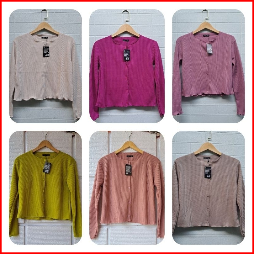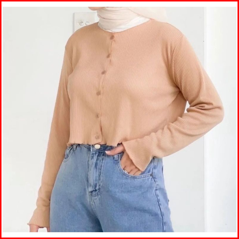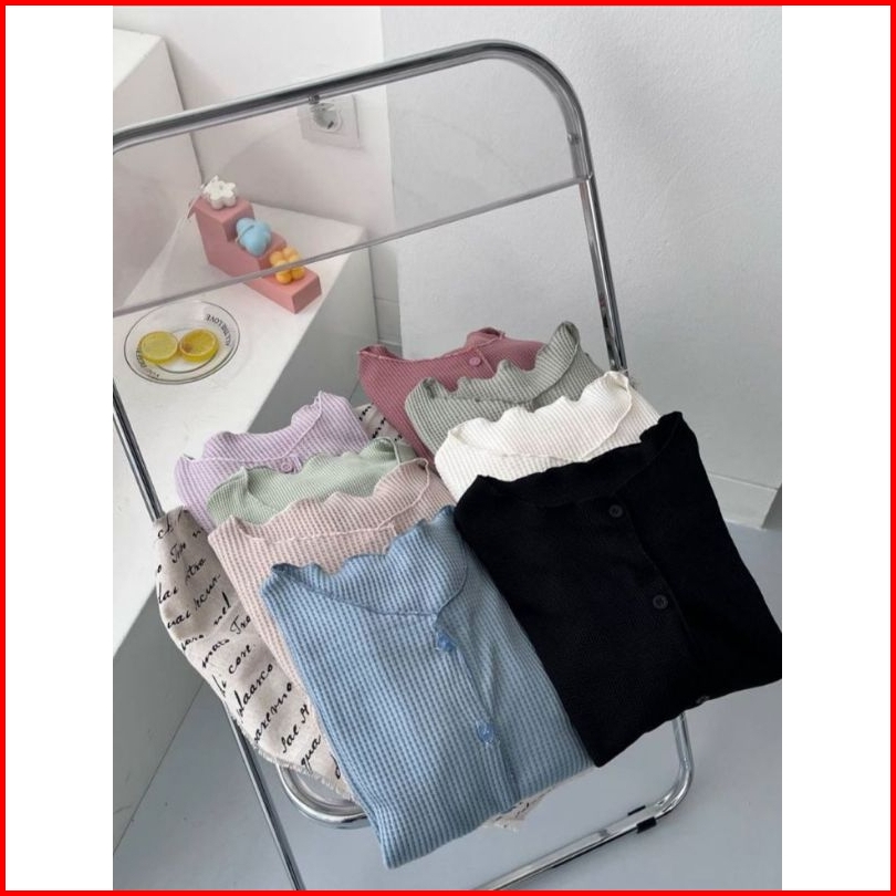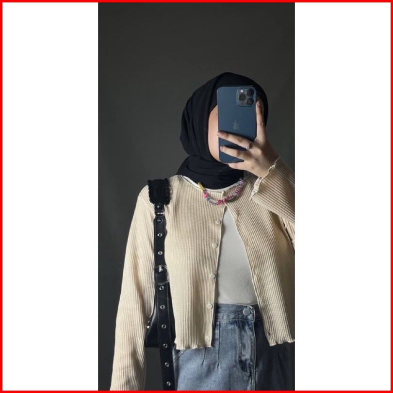 Cardigan Crop Waffle Korean Style Cardigan Wanita Premium