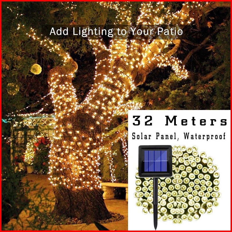 Led String 32 Meter 300 Led Anti Air Tenaga Surya Lampu Dekorasi Taman Modern Lampu Pohon