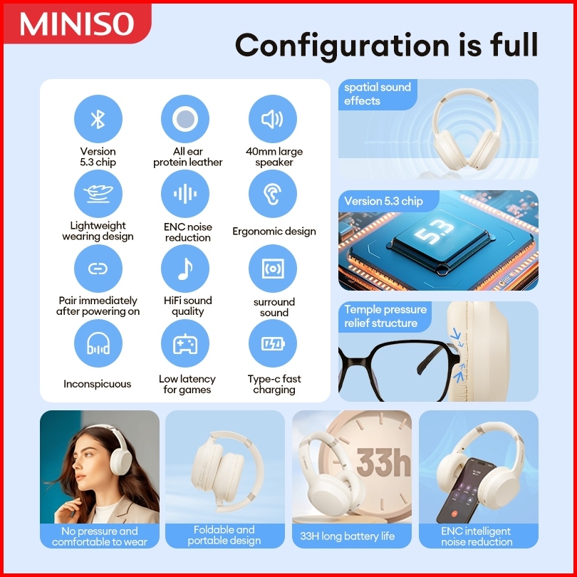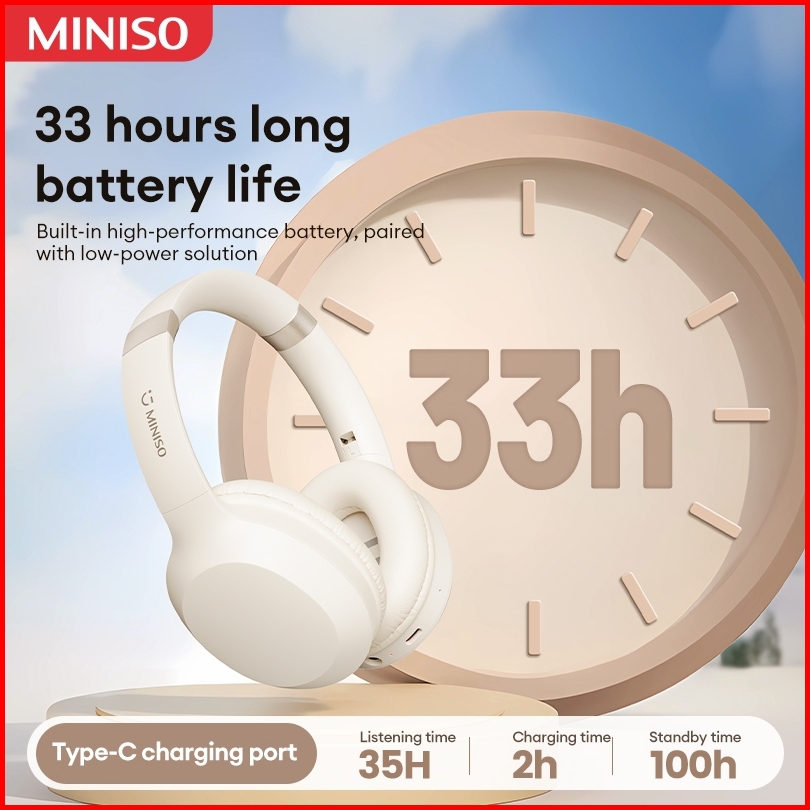 Miniso Mcd02 Wireless Bluetooth Headset Noise Isolating Headphone V5.3 3d Stereo