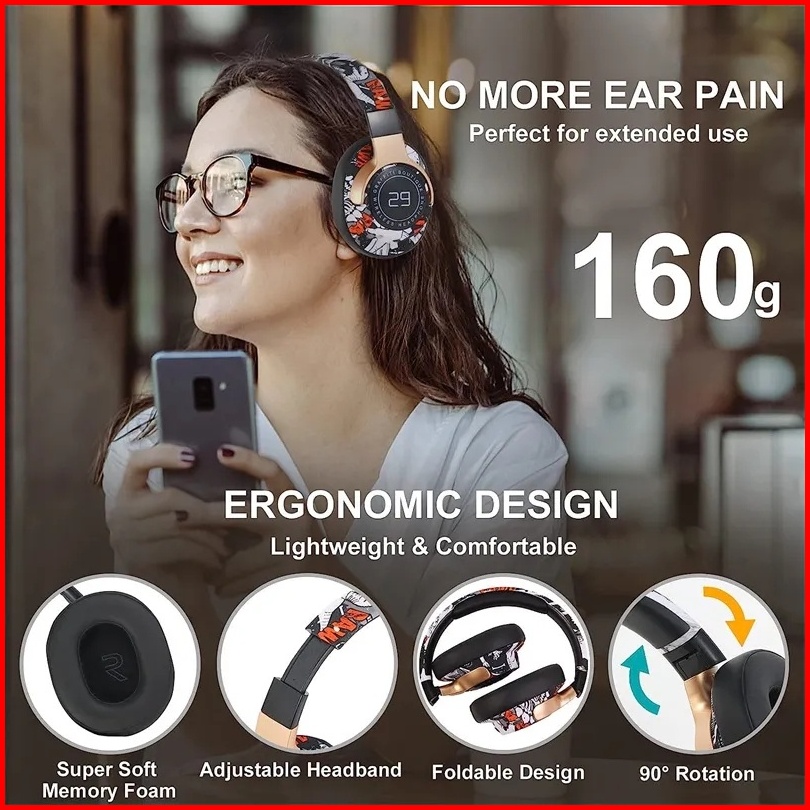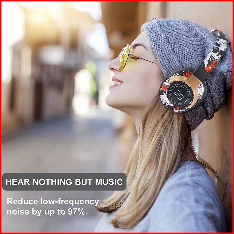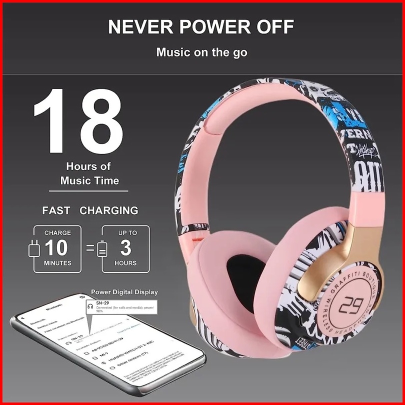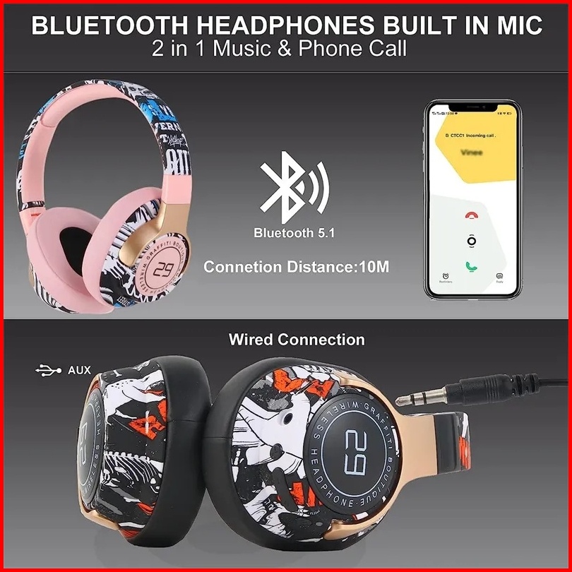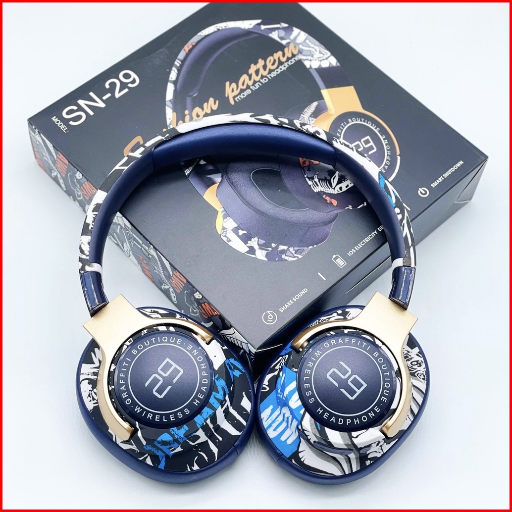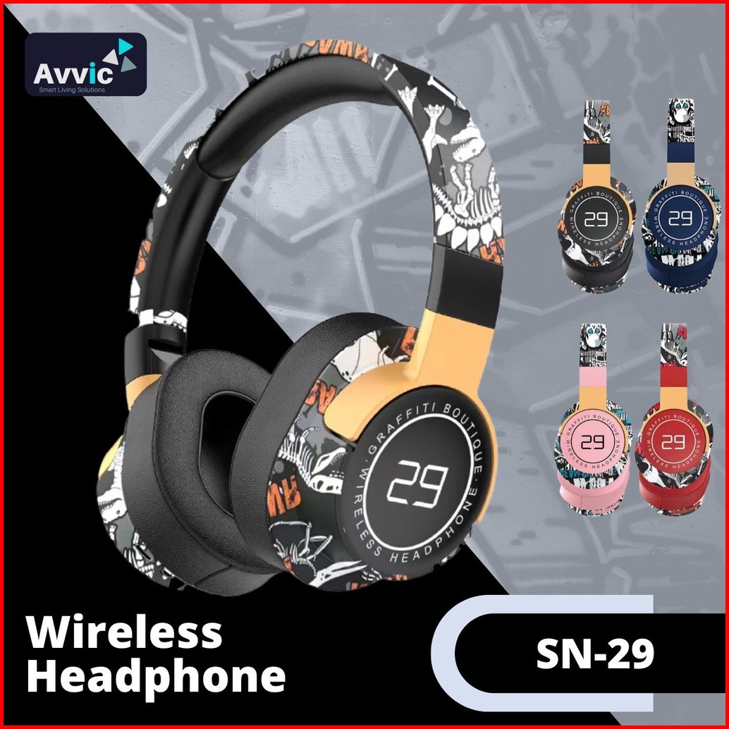 Avvic X Sn-29 Headphone Bluetooth Wireless Graffiti Motif Headset Music Hifi Stereo Headphones
