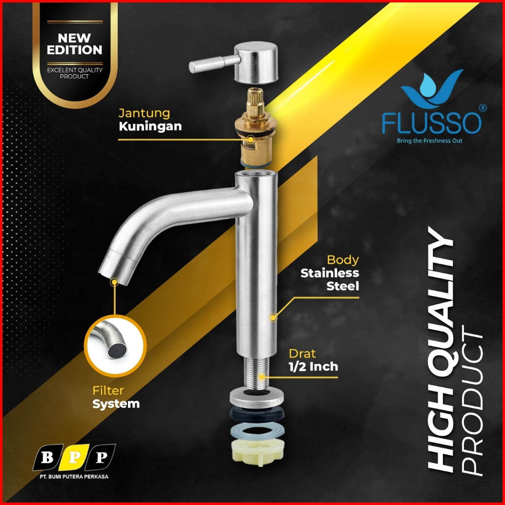 Kran Wastafel Keran Cuci Tangan Flusso Stainless Original Garansi 566