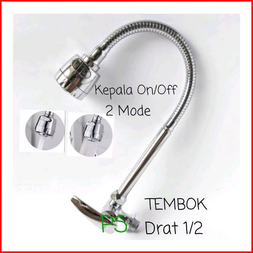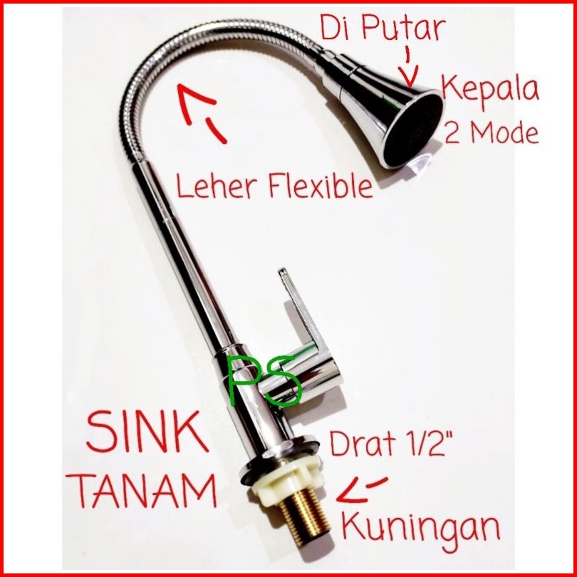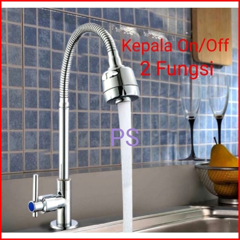 Kran Angsa Tanam Flexible Kepala Besar On Off - Keran Dapur Sink Bak Cuci Piring-kran Wastafel