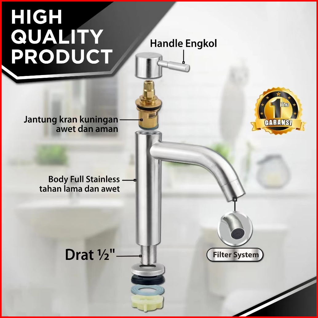 Stainless Kran Wastafel Kran Bambu Kran Cuci Tangan Sus304 Original Garansi