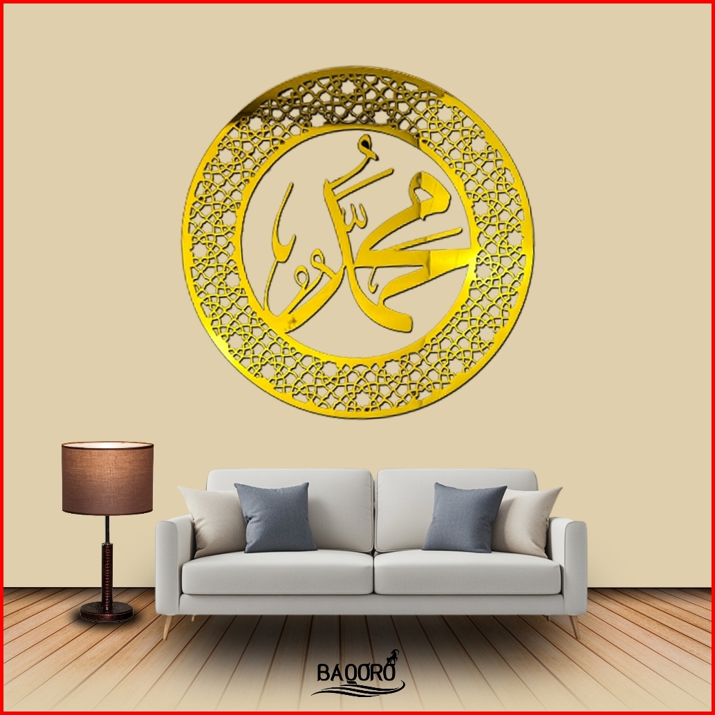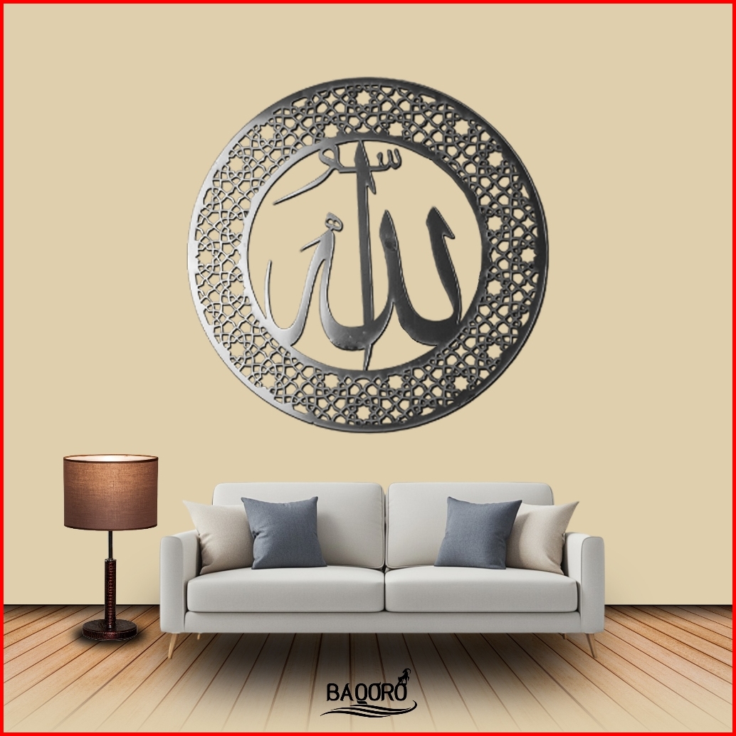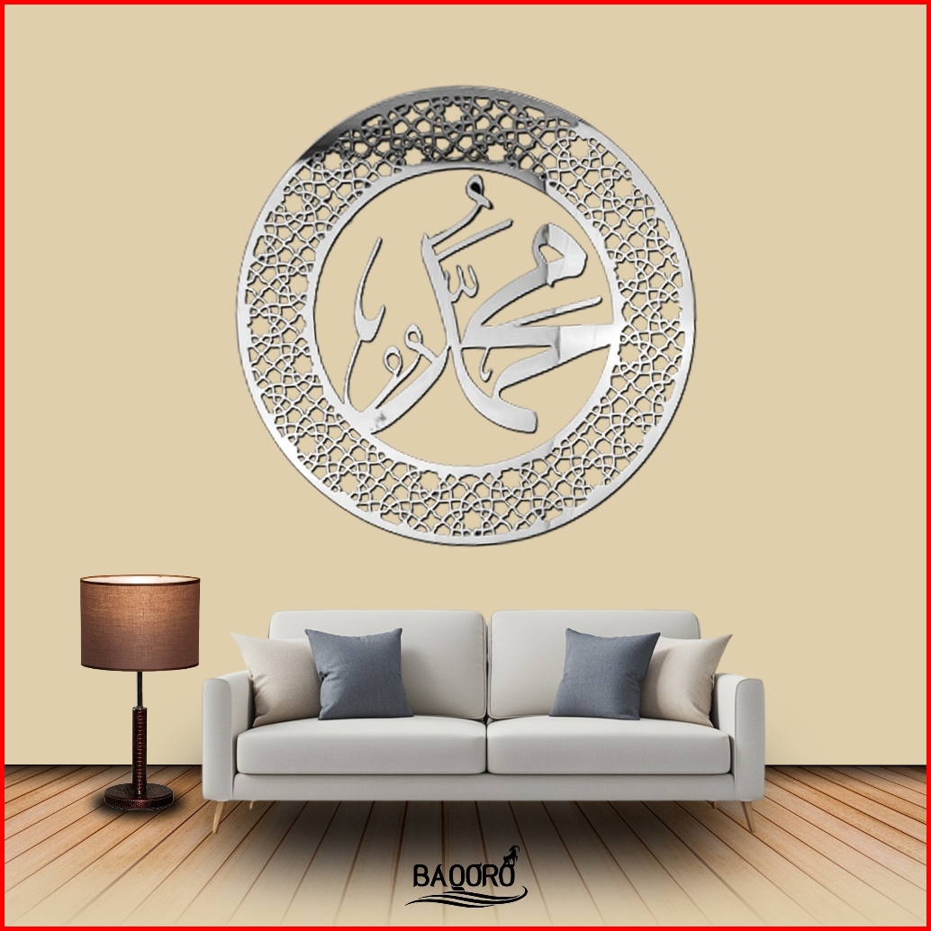 Hiasan Allah Muhammad Akrilik Mirror Silver Hitam Dekorasi Pajangan Islami Untuk Dinding Ruang Tamu Musholla Dan Kamar