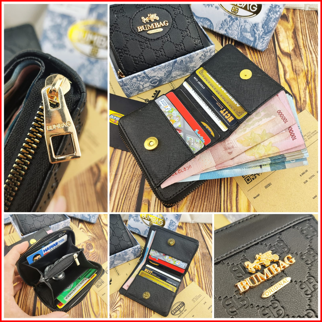 Bumbag - Dompet Lipat Mini Blackedition Freebox Tutup Amplop - Dompet Wanita Uang Kartu Mini Embos Free Box Dustbag - Do