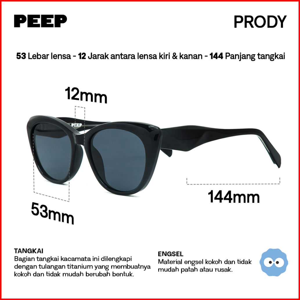 Peep Eyewear - Prody Frame Kacamata Hitam Sunglasses Cat Eye Unisex Pria Wanita