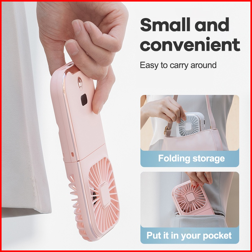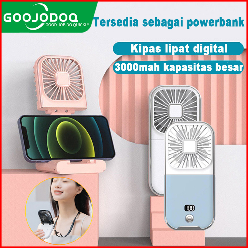 Goojodoq Kipas Angin Portable Mini Usb Lipat Dudukan Ponsel 3 In1 Kipas Genggam Mini Lipat Kipas Angin Power Bank 3000ma