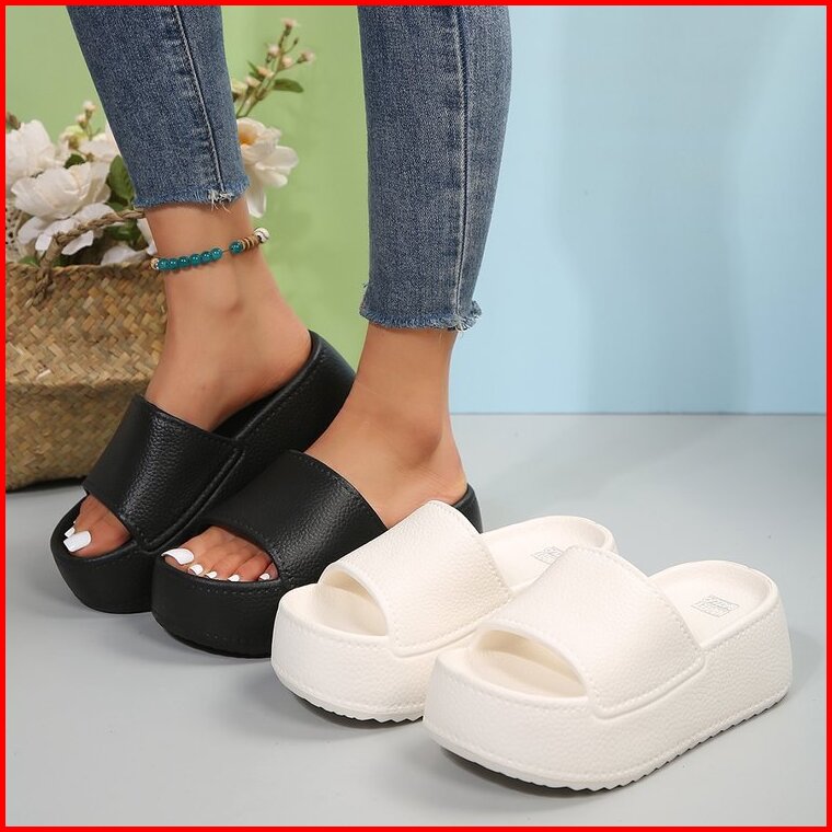 Toomia 2024 Sandal Wedges Slip On Wanita Dewasa Model Kekinian Bahan Karet Tinggi 5 Cm Model Terbaru Empuk Anti Slip Sel