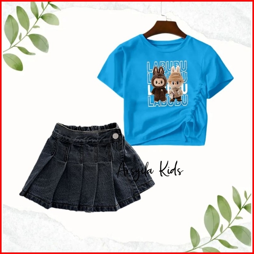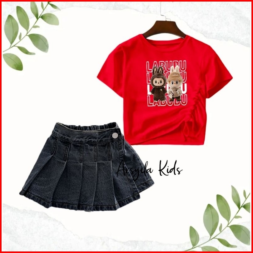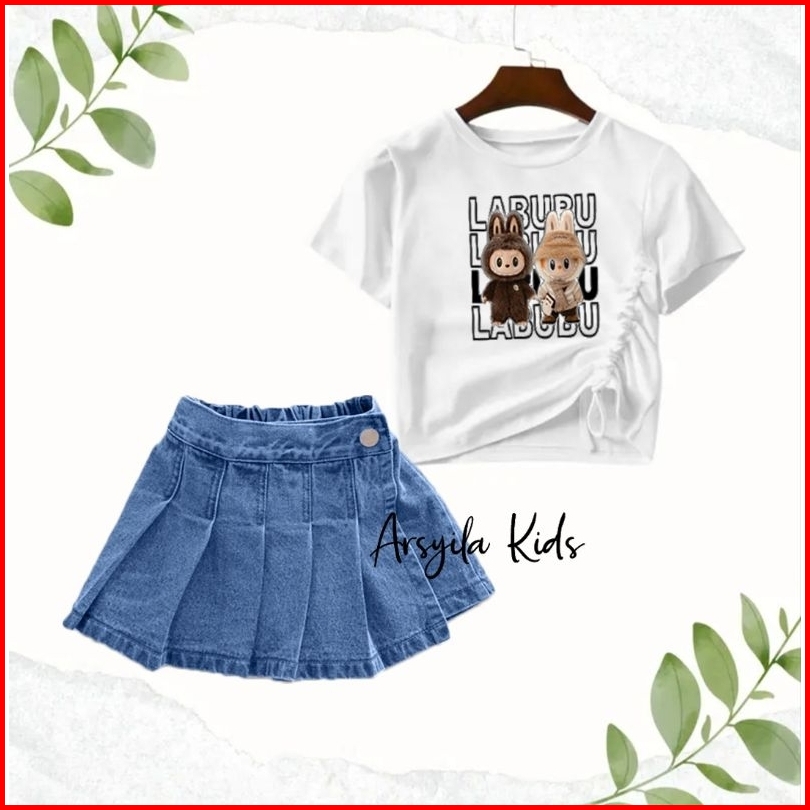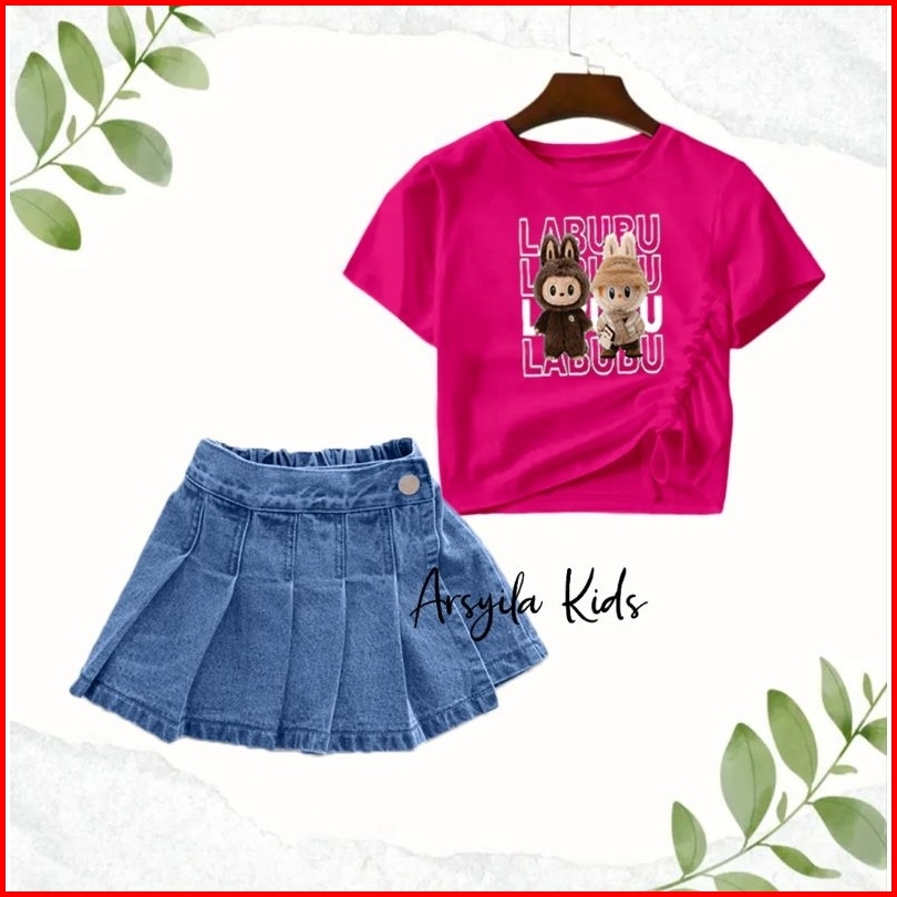 Arsyila Kids-stelan Kaos Serut Rocela Rok Celana Anak Perempuan
