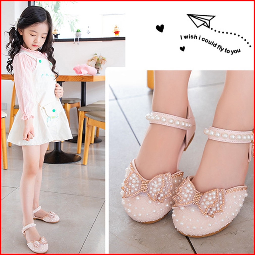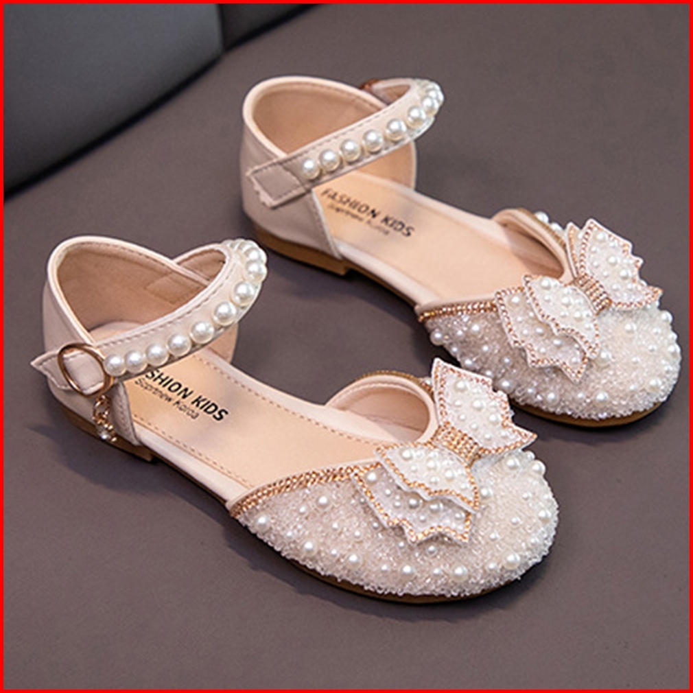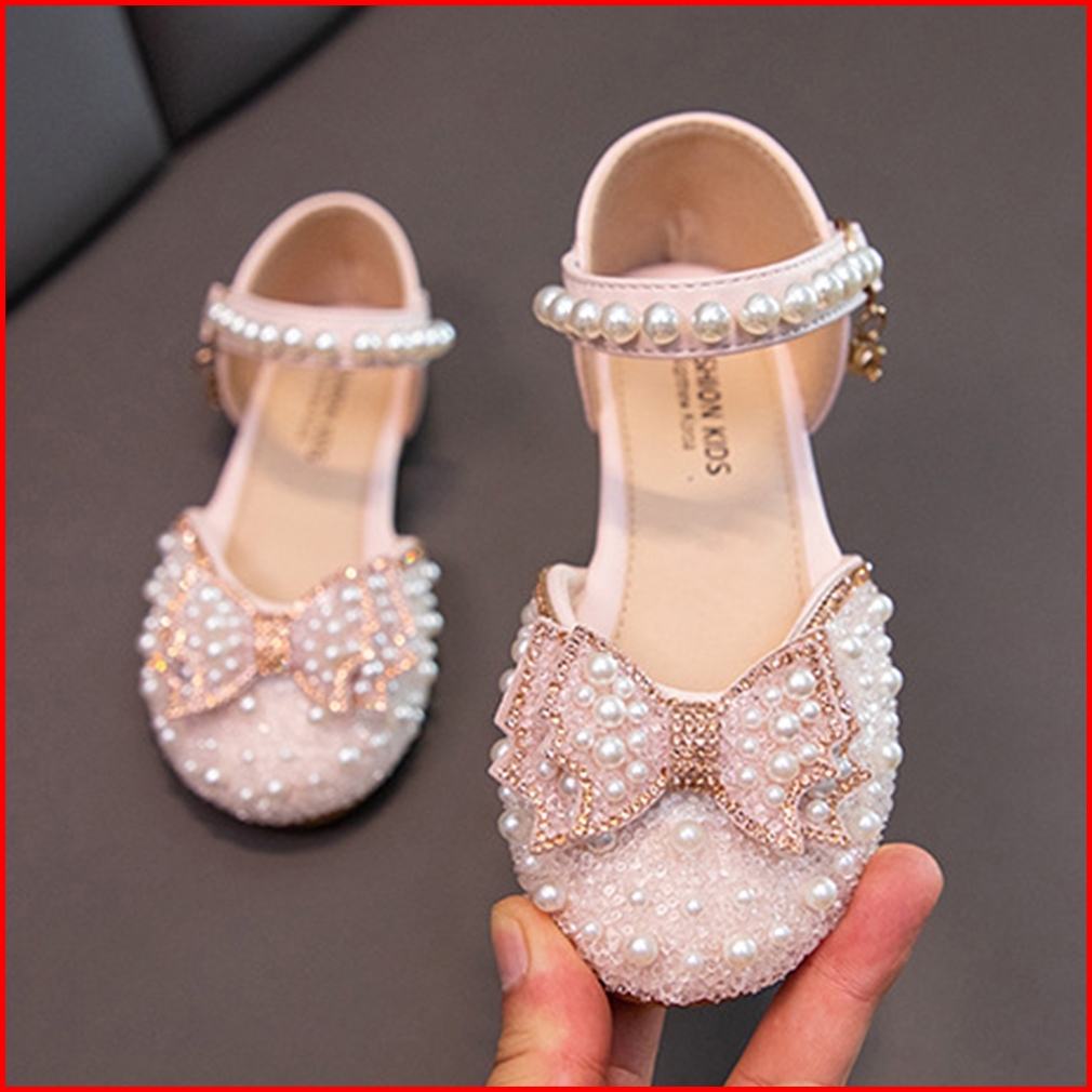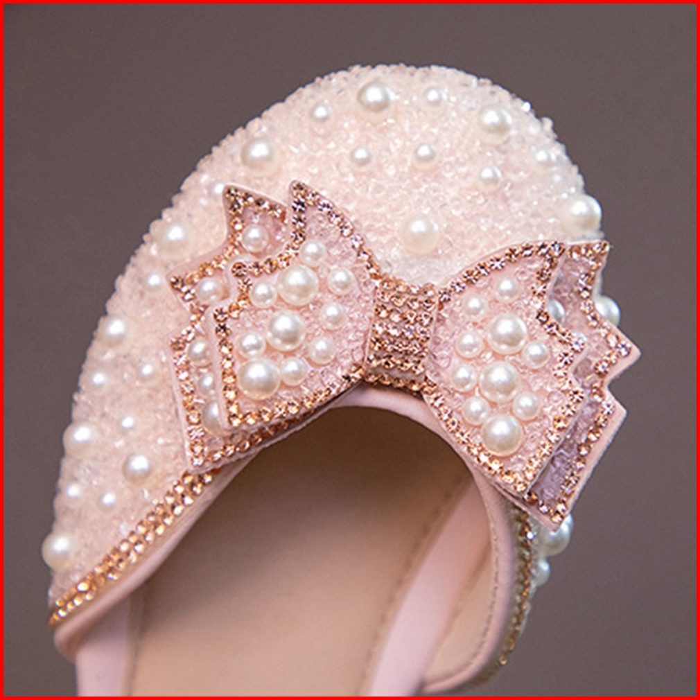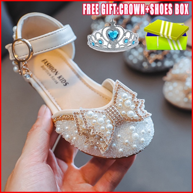 Ukuran 21-34 Gadis Anak Mutiara Lembut Bawah Sepatu Kinerja Sepatu Pesta Hadiah Ulang Tahun Kotak Sepatu Mahkota