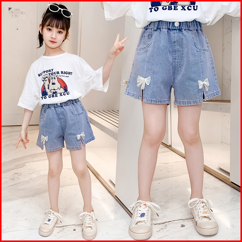 4 - 13 Tahun Celana Pendek Anak Perempuan Celana Jeans Pendek Anak Perempuan Baggy Pants Celana Pendek Cewek Chino Bawah