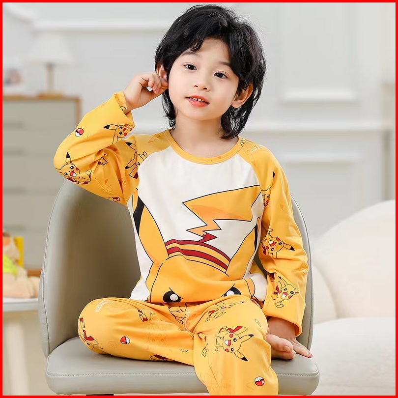 Rg Setelan Baju Tidur Anak Laki Pp 1 - 12 Tahun Bahan Katun Import Lengan Celana Panjang