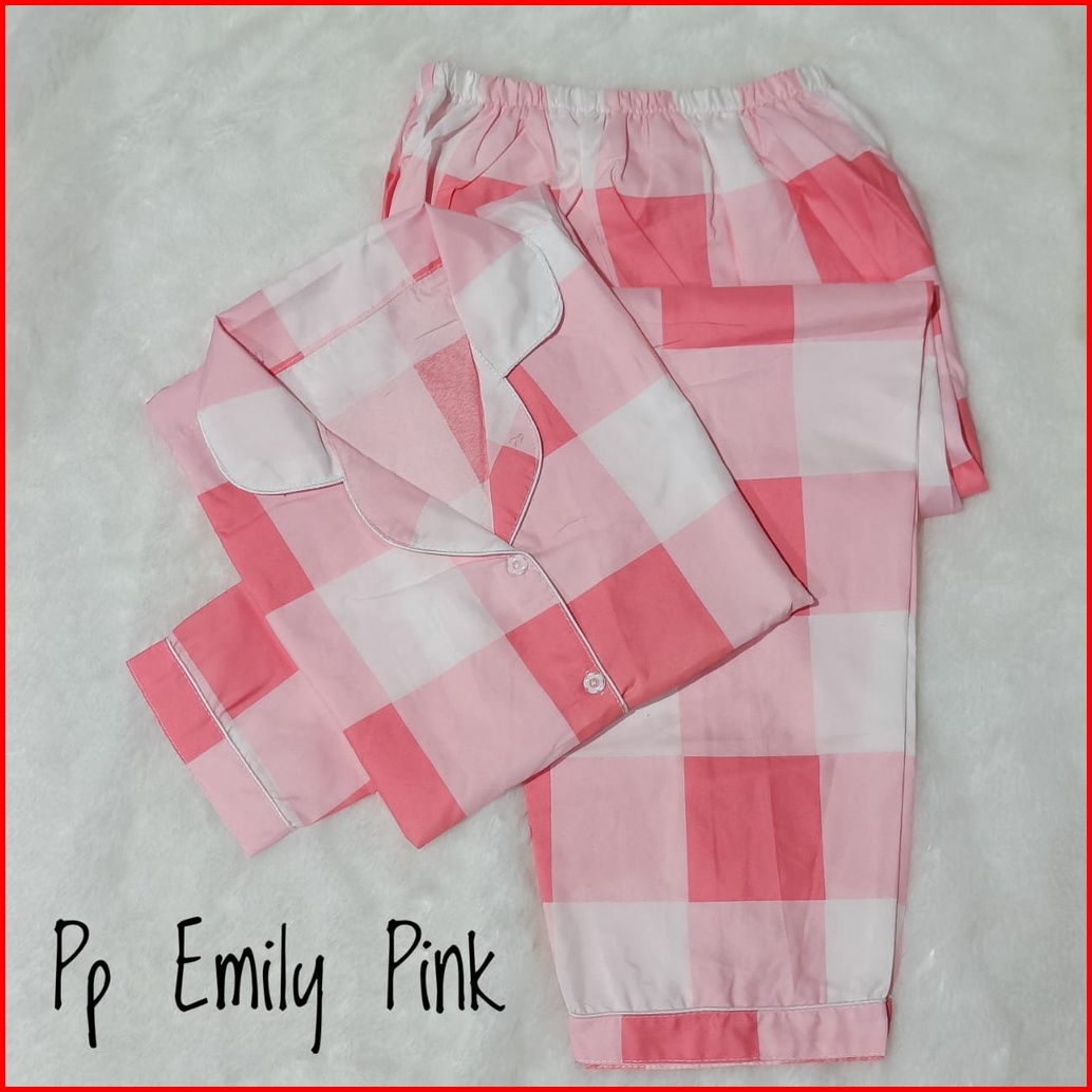 Bj - Piyama Pp Wanita Motif Kotak - Baju Tidur Lengan Panjang Katun Premium