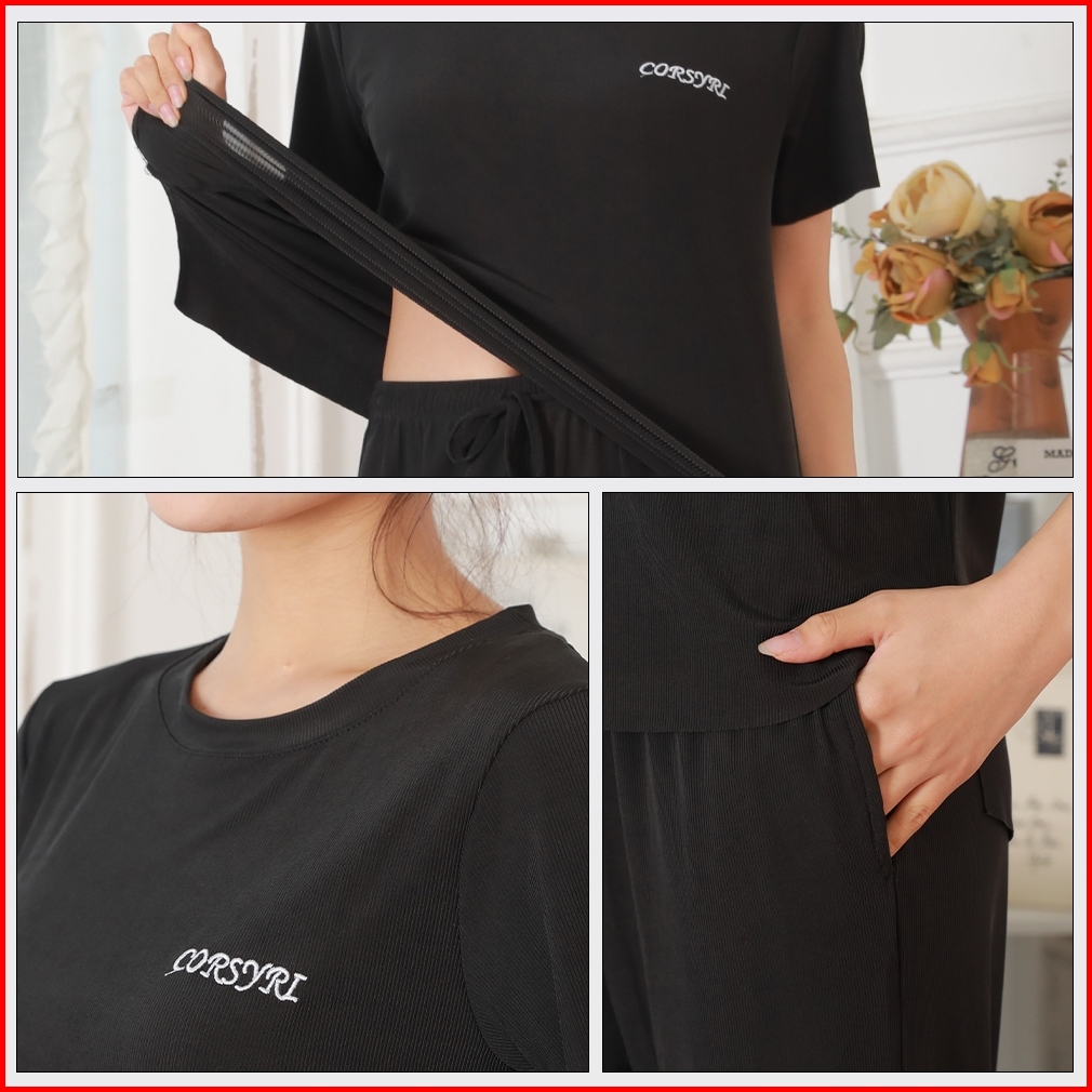 Uninice Set Piyama Lengan Pendek Warna Polos Gaya Kasual Wanita Keren Dan Bernapas Bisa Dipakai Di Luar