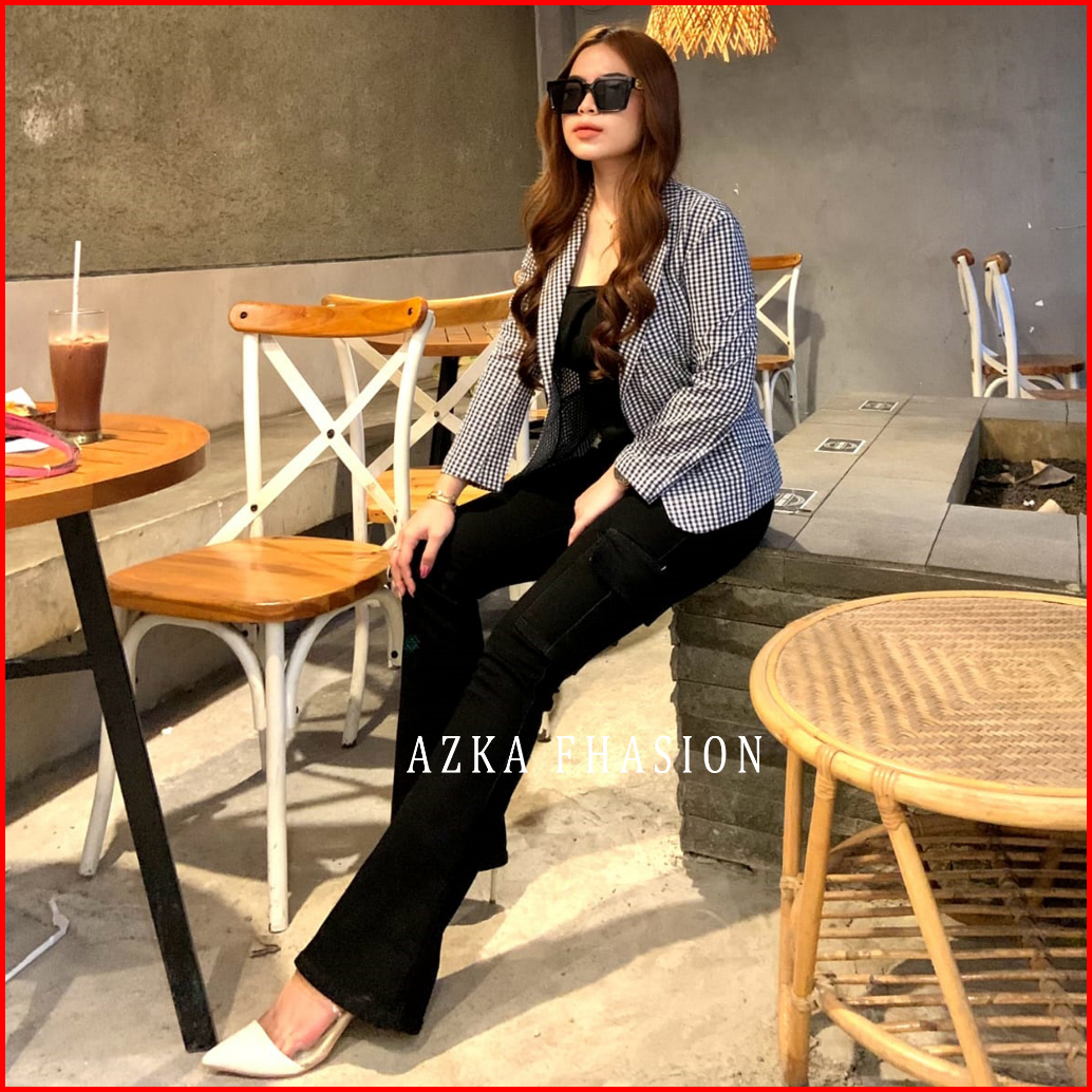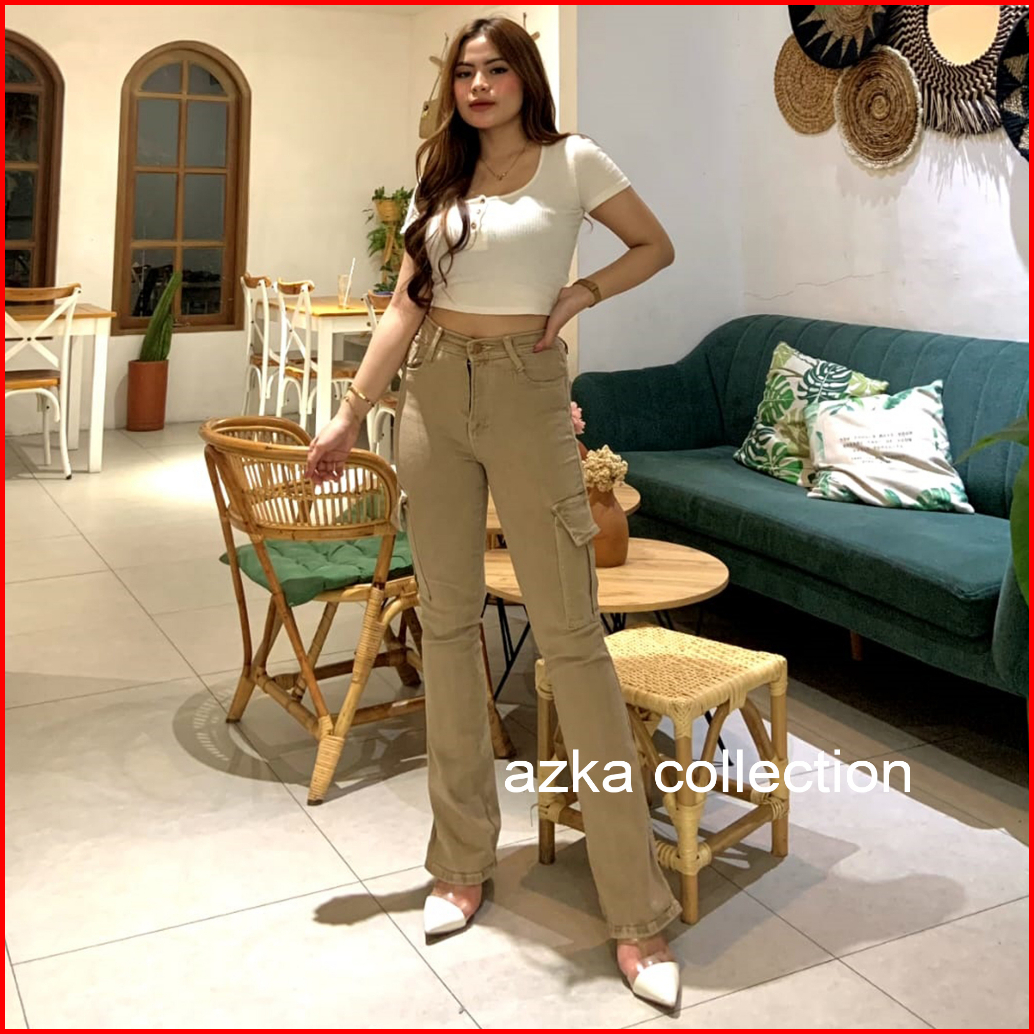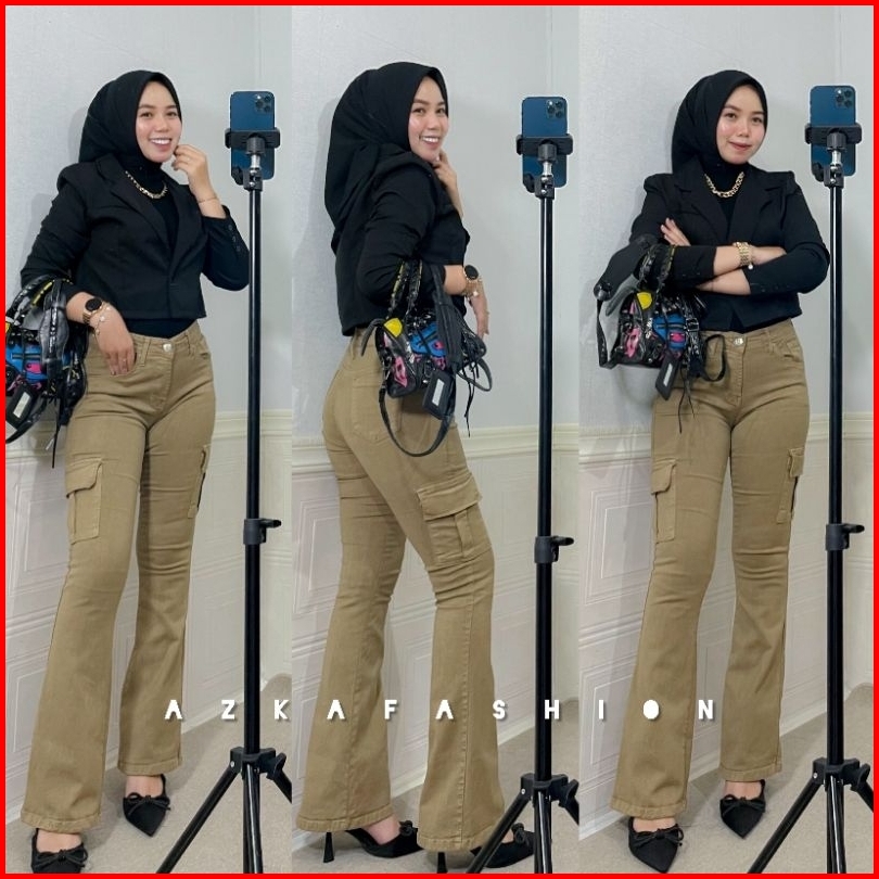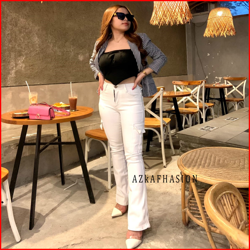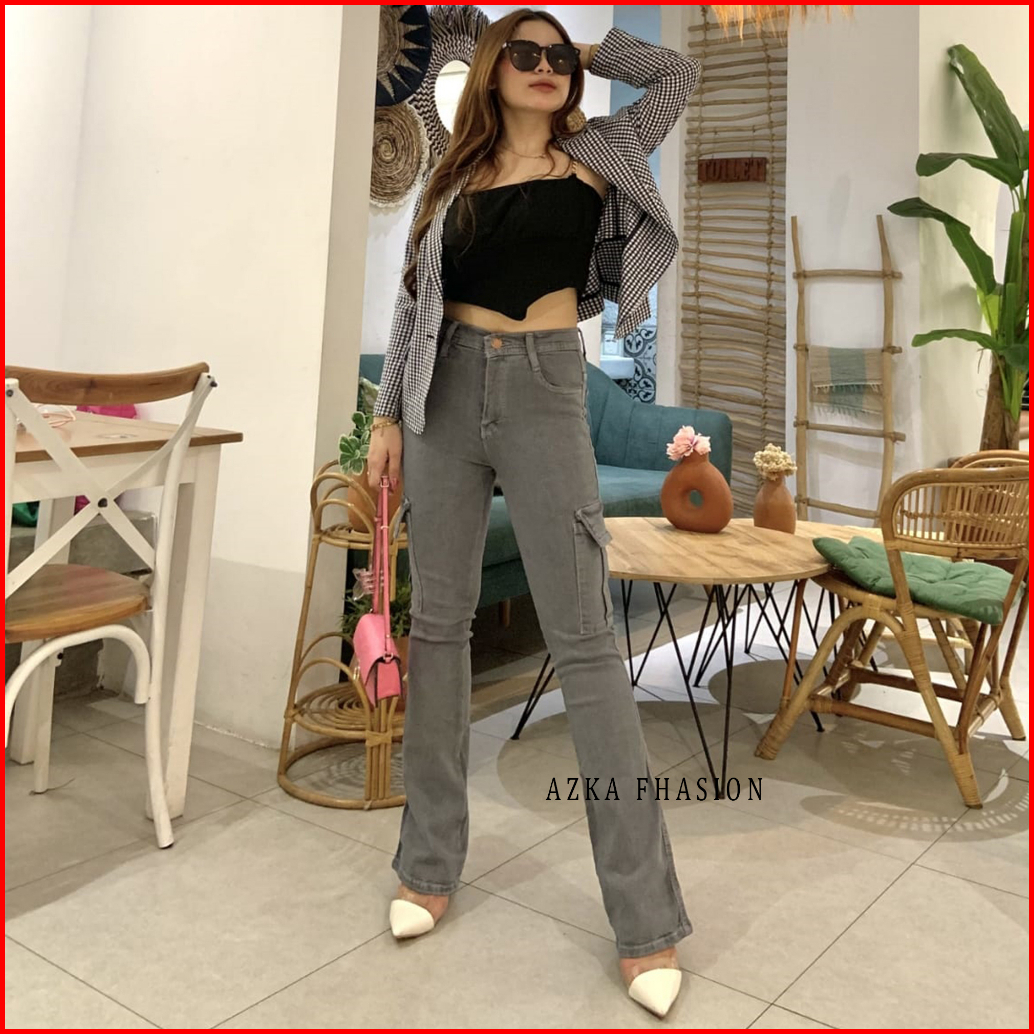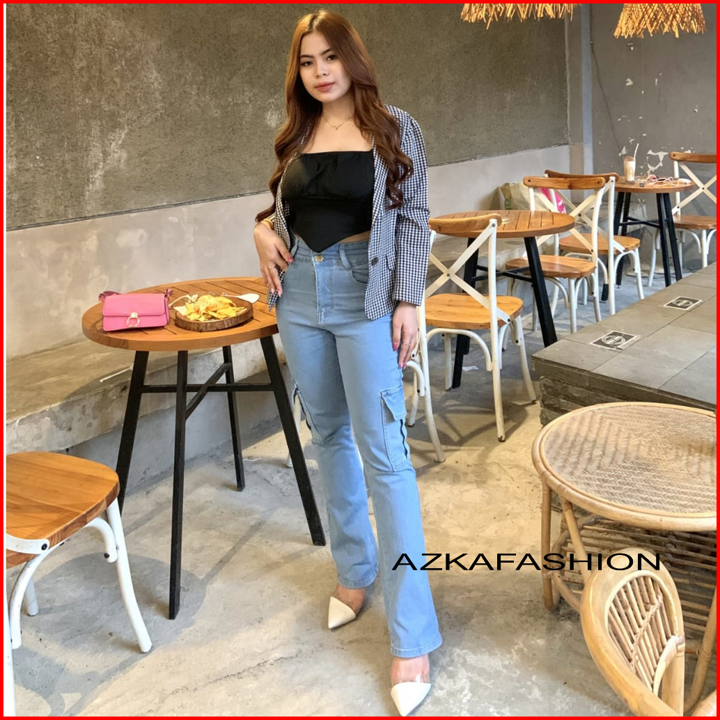 Azka - Celana Jeans Cutbray Kargo Wanita Terlaris Best Seller