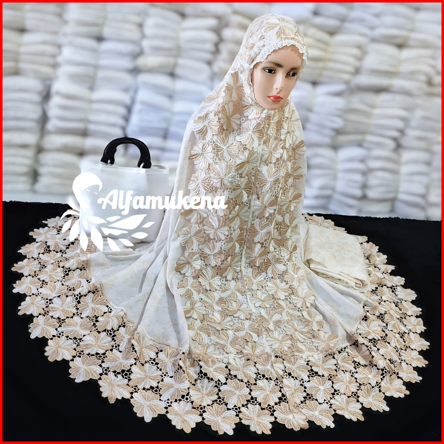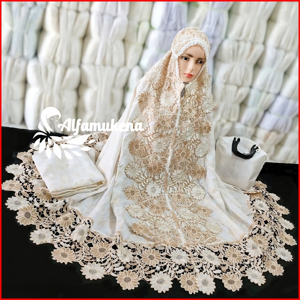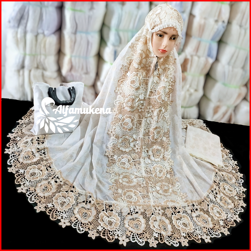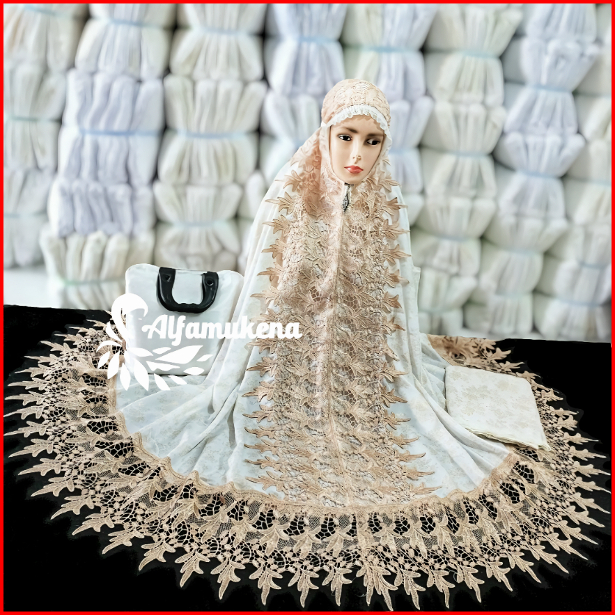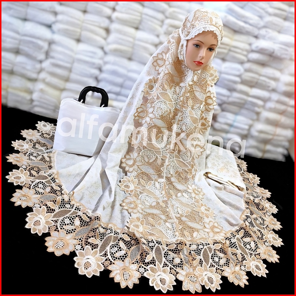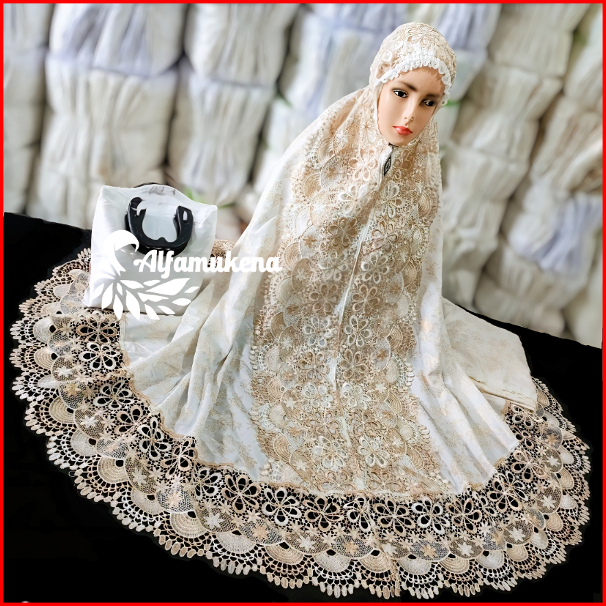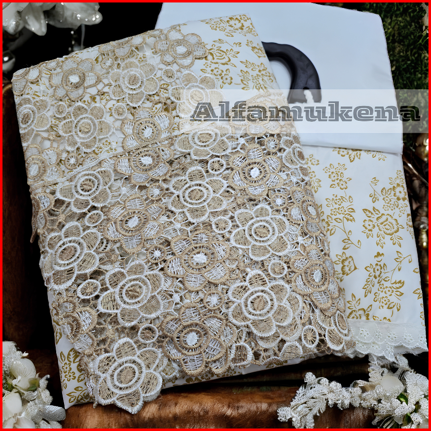 Mukena Dewasa Katun Foil Prada Full Renda Jumbo