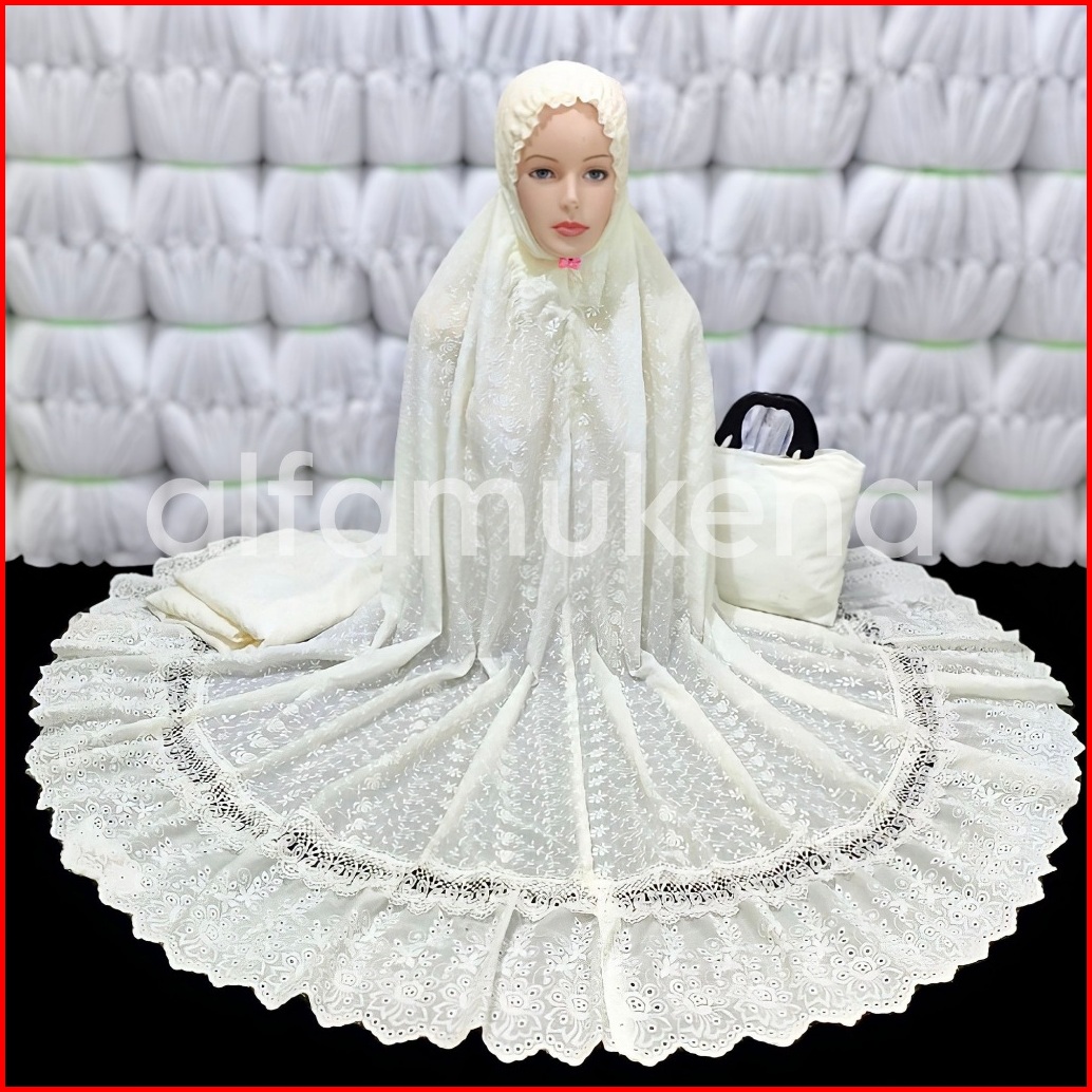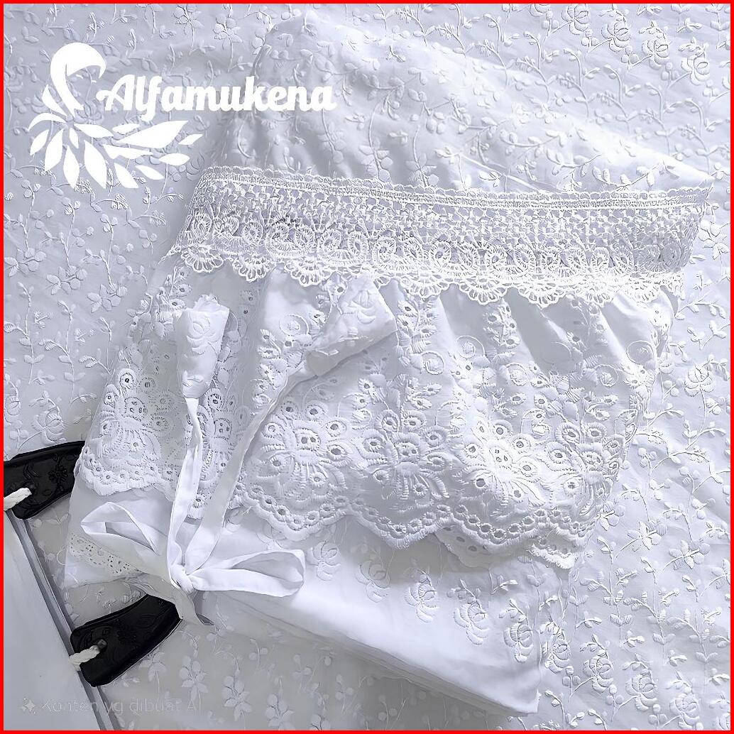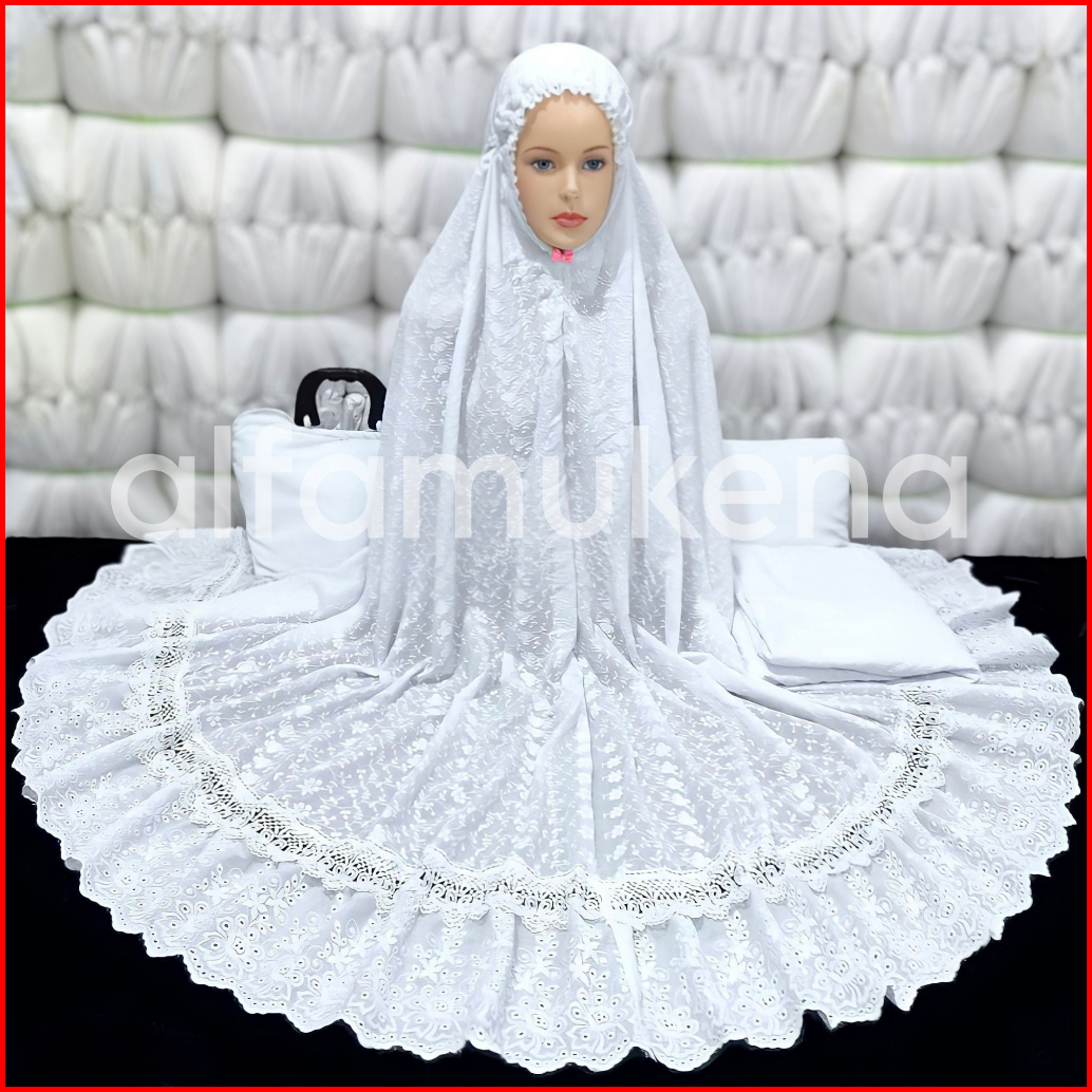 Mukena Dewasa Katun Paris Tulip Rempel Putih Premium Bordir