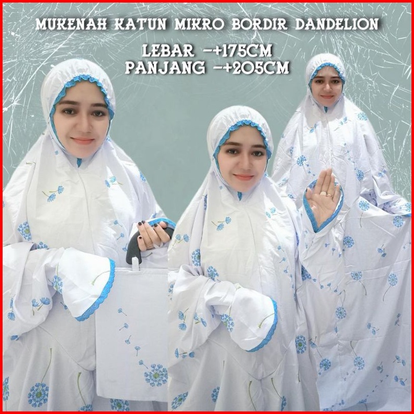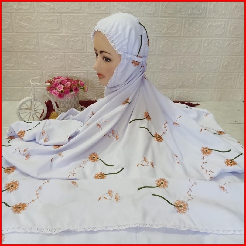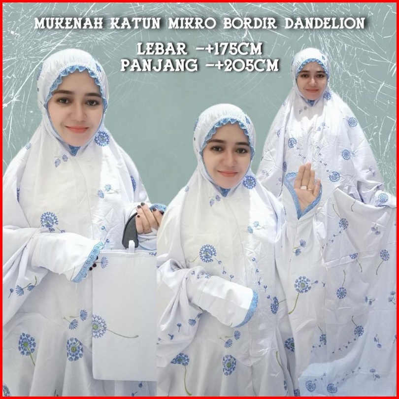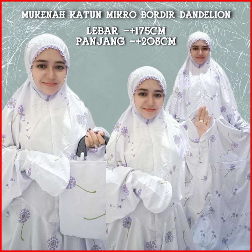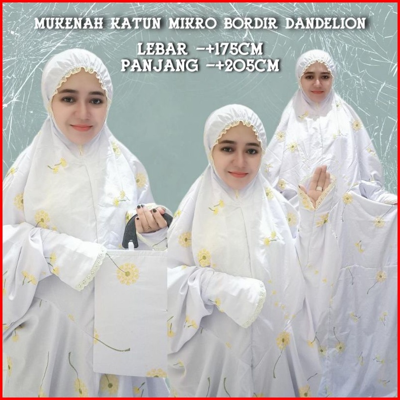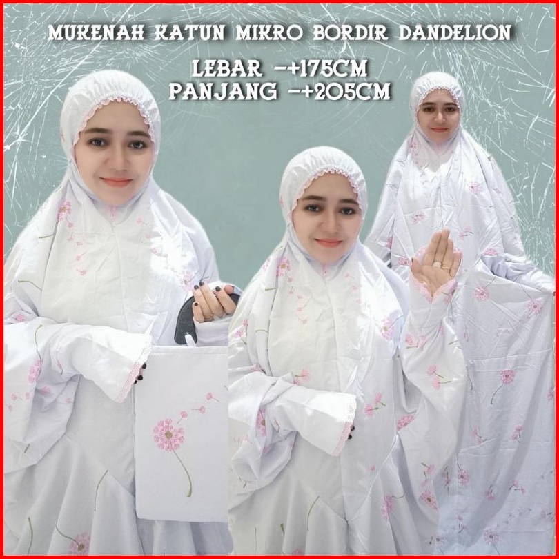 Mukena Dewasa Putih Katun Mikro Bordir Dandelion