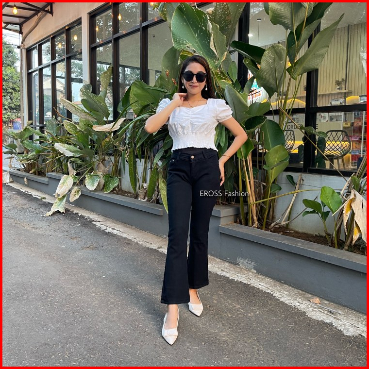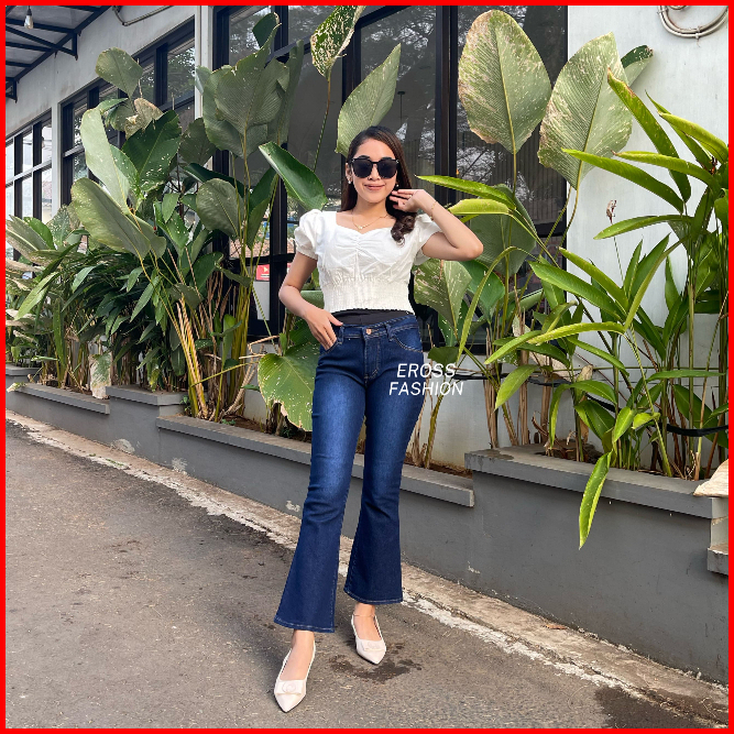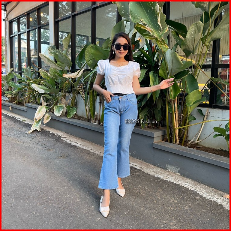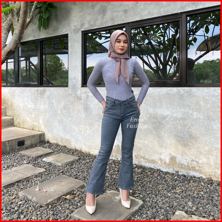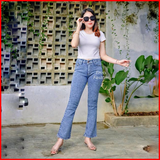 Celana Jeans Cutbray Denim Wanita Panjang Elena