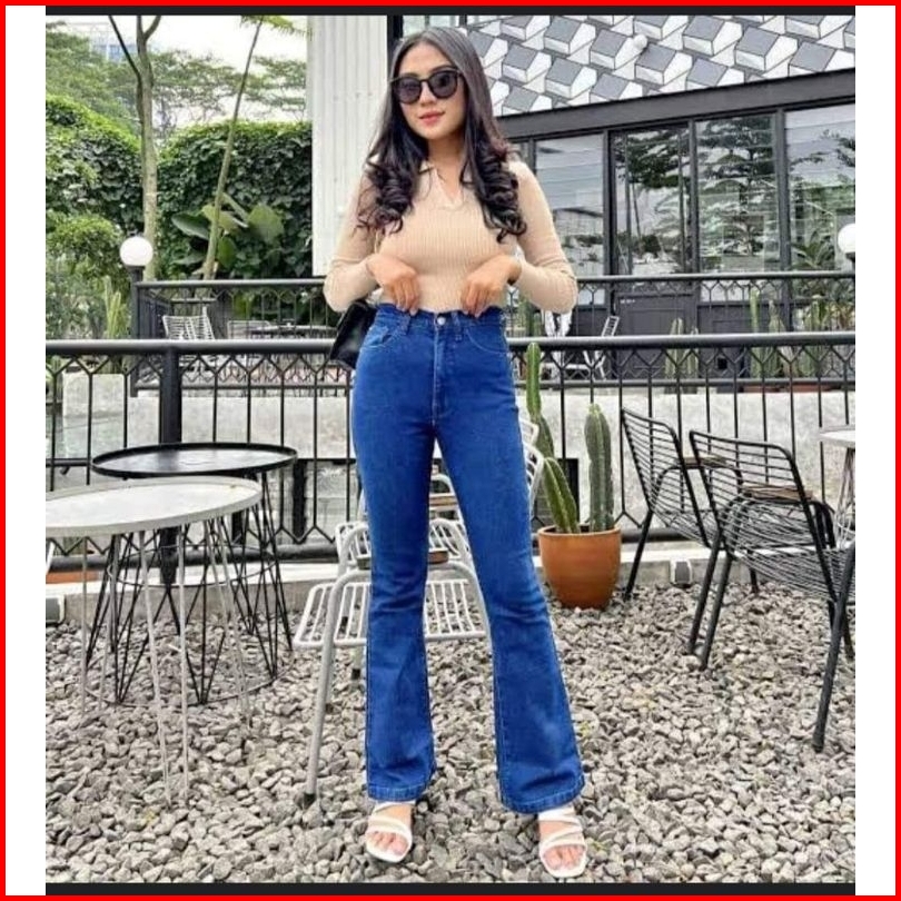 Highwast Jeans Cutbray Loose Anti Ngatung Melar Tebal
