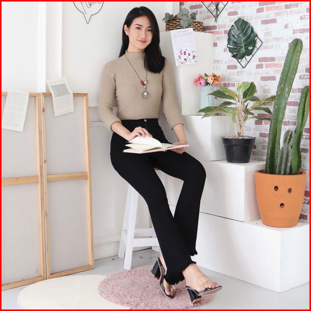 7c-g Celana Jeans Premium Highwaist Cutbray Streacht Jeans 5 Warna 27 - 34