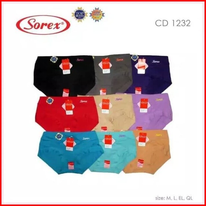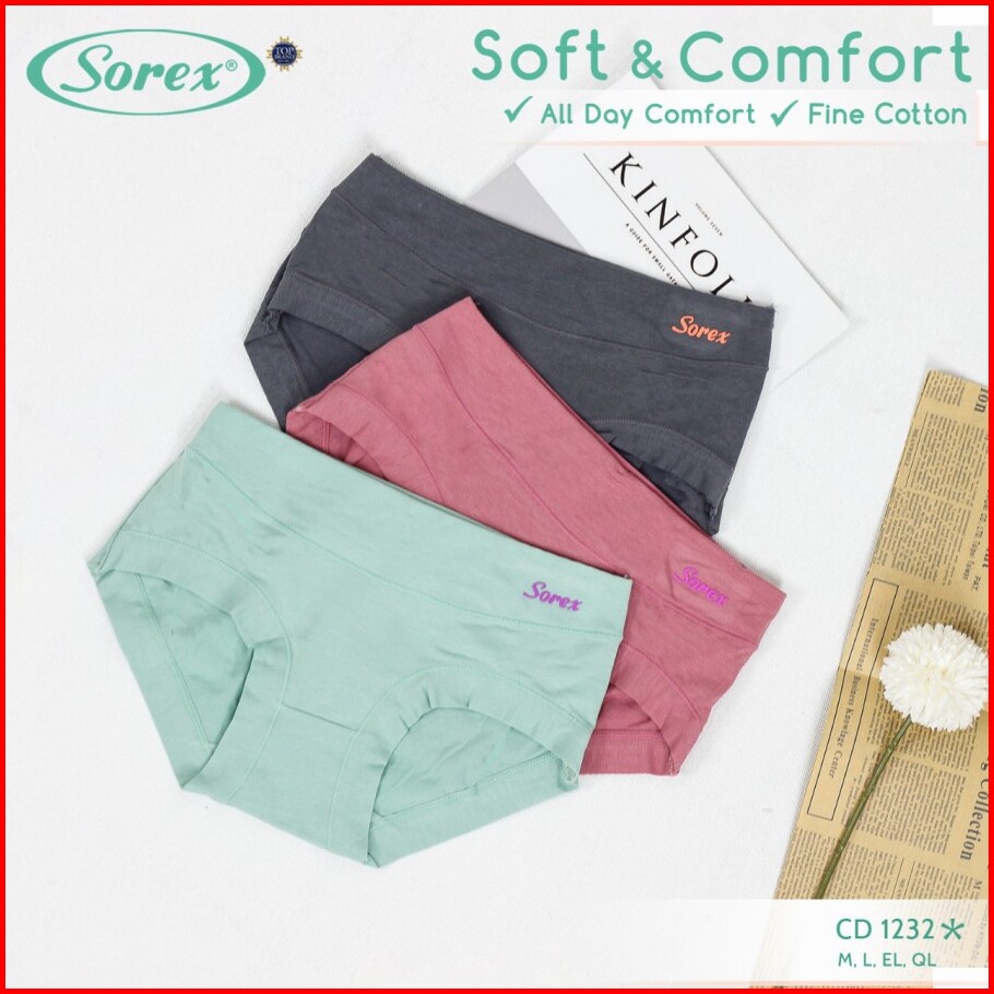 6pcs Celana Dalam Wanita Sorex 1232 Cd Wanita Cutting Midi Bahan Katun Premium Halus Dan Adem