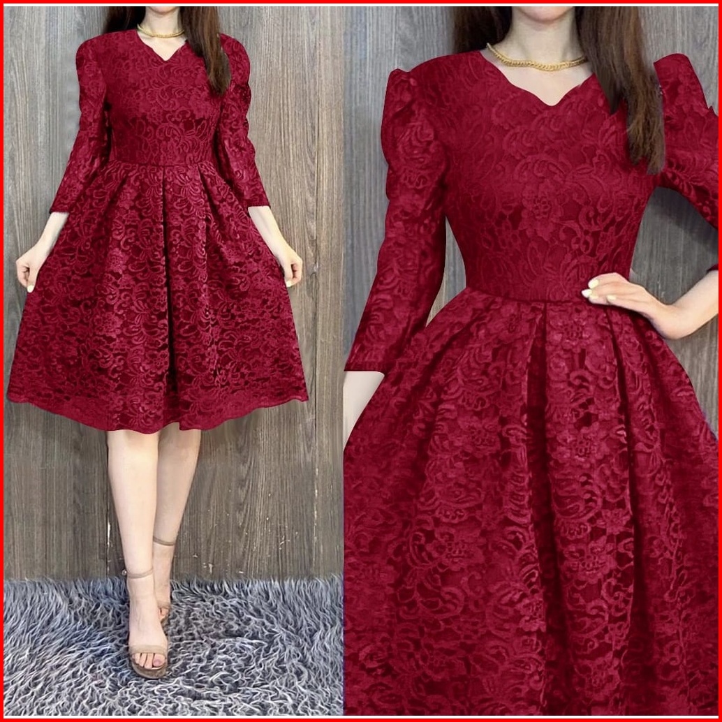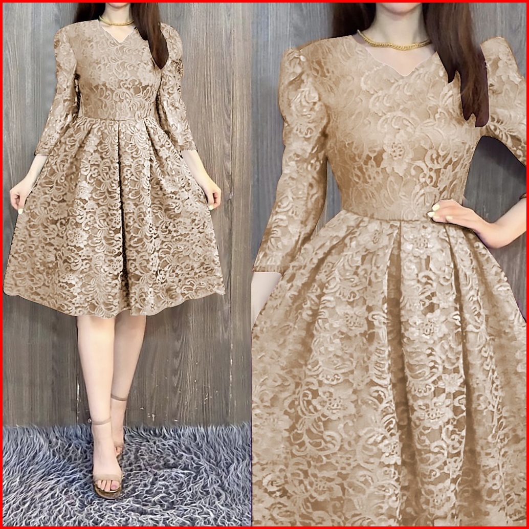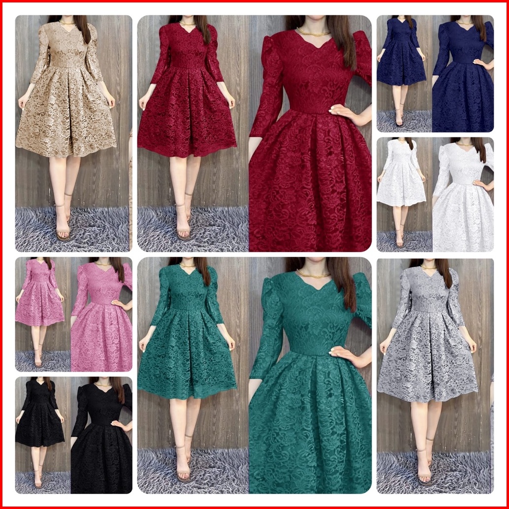 Realpic 3 Ukuran M L Xl Dress Agnes Fashion Pakaian Wanita Dress Gaun Midi Brukat Lapis Furing Kr