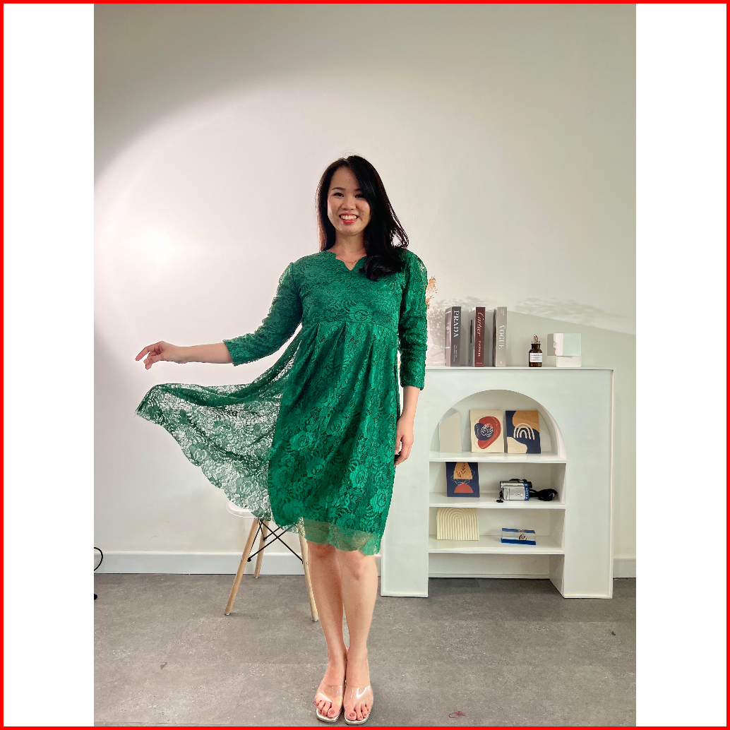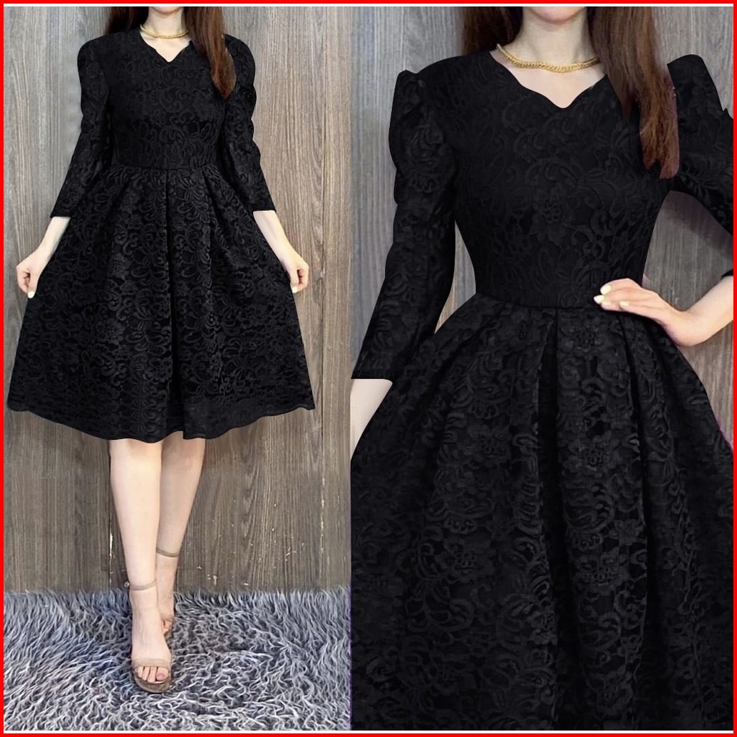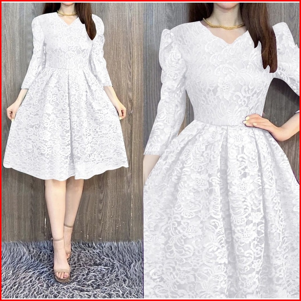 Realpic 3 Ukuran M L Xl Dress Agnes Fashion Pakaian Wanita Dress Gaun Midi Brukat Lapis Furing Kr