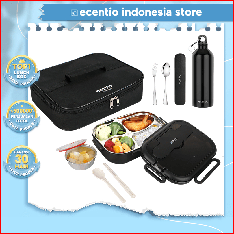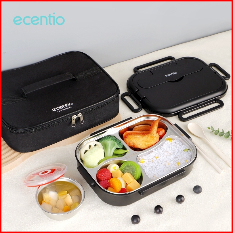 4pcstempat Makan Stainless 304 Set Tahan Panas Lunch Box 1000ml Anti Bocor Tempat Minum 750ml 500ml Dan Sendok Garpu Set