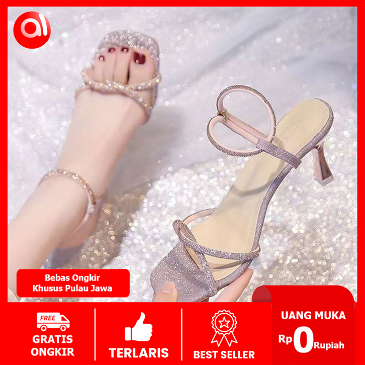 Sandal wanita sandal heels gladiator 5cm ankle high heels wanita terbaru sandal wanita hak tinggi silver/emas