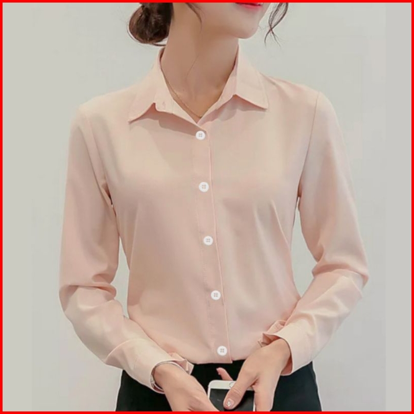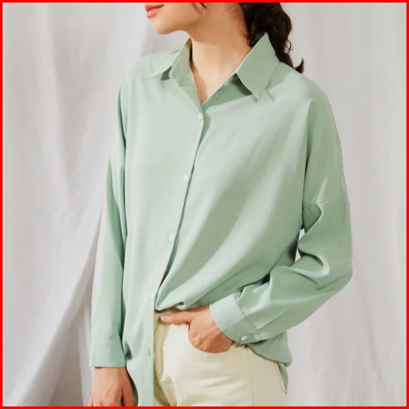 Baju Kemeja Wanita Lengan Panjang Polos Basic Kemeja Hitam Putih Navy Army Sage Pink Formal Kasual Kerja