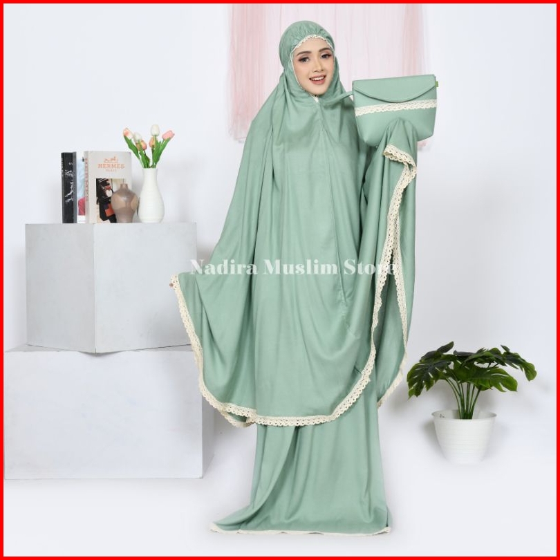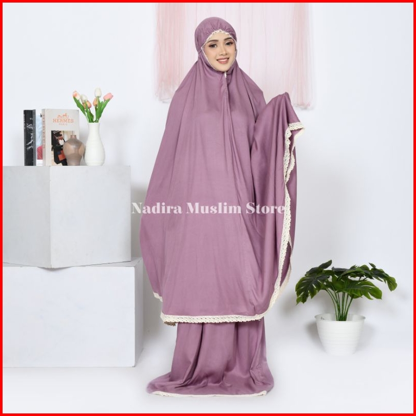 Mukena Dewasa Super Jumbo Rayon Polos Renda Muat Sampai Bb 100 Kilo